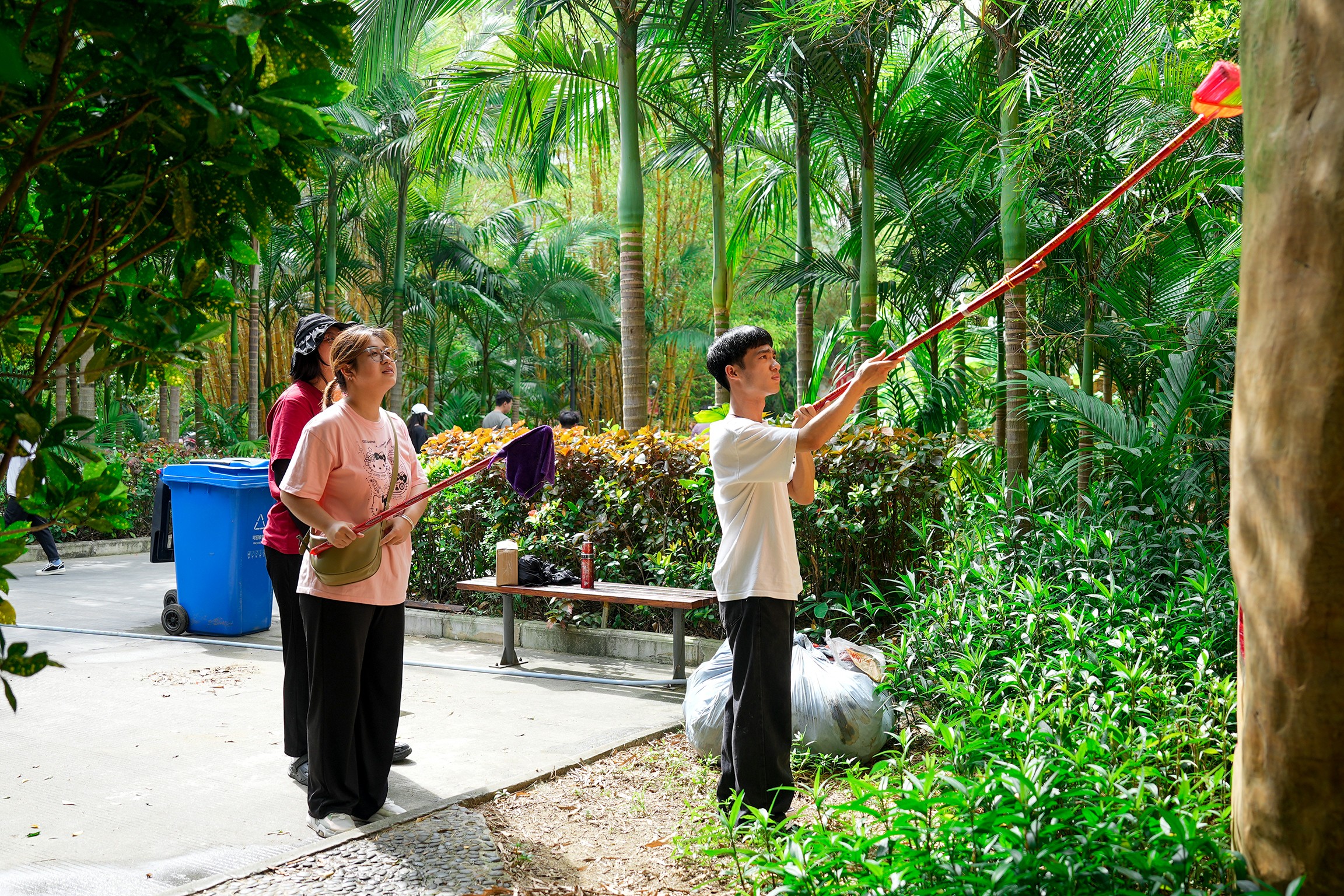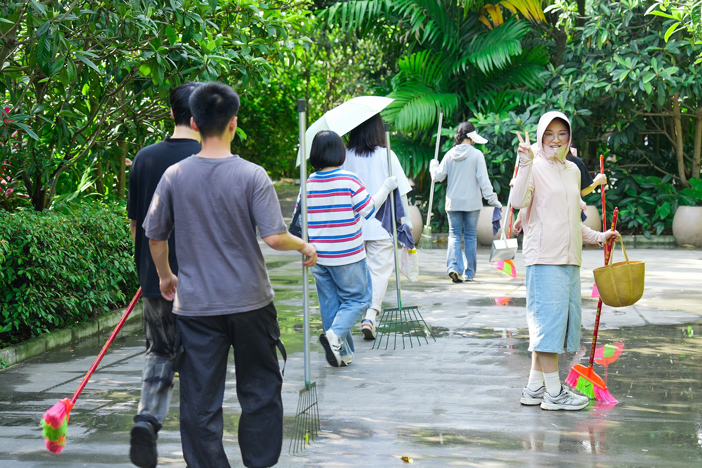 他们手持清洁工具,齐心协力清扫石刻文化林,用实际行动展示了他们的爱国情怀和社会责任意识。