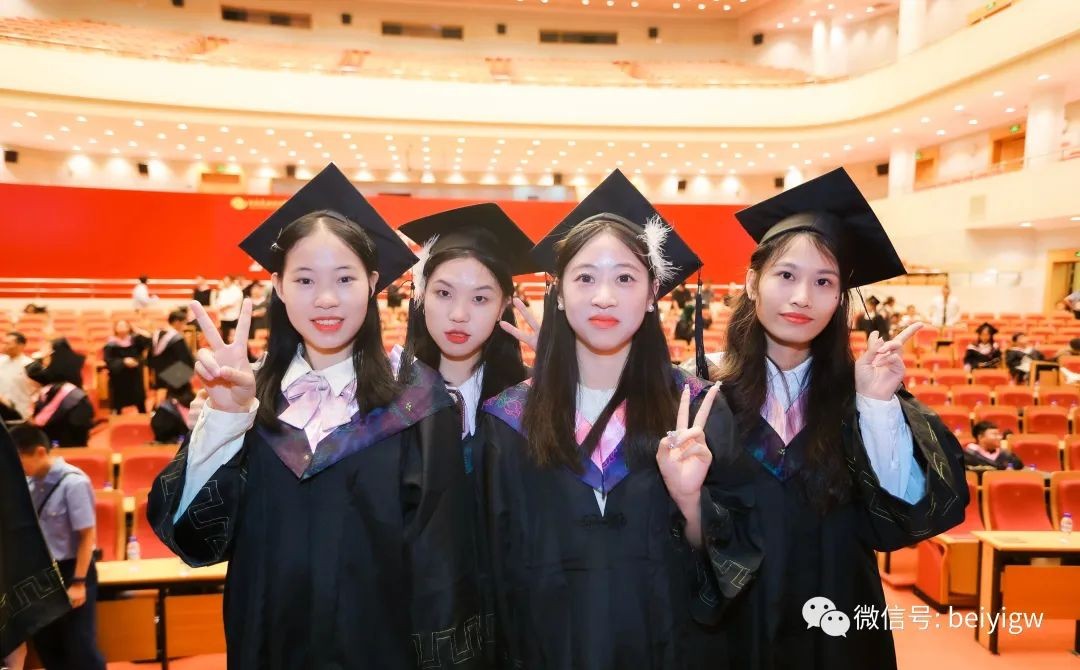 典礼上,学校学位评定委员会委员为毕业生代表颁发毕业证书和学位证书并一一拨穗正冠,合影留念。师长声声祝福温情入耳,眼含欣慰扶手相送;学子毕业礼成,意气风发,振翅高飞。