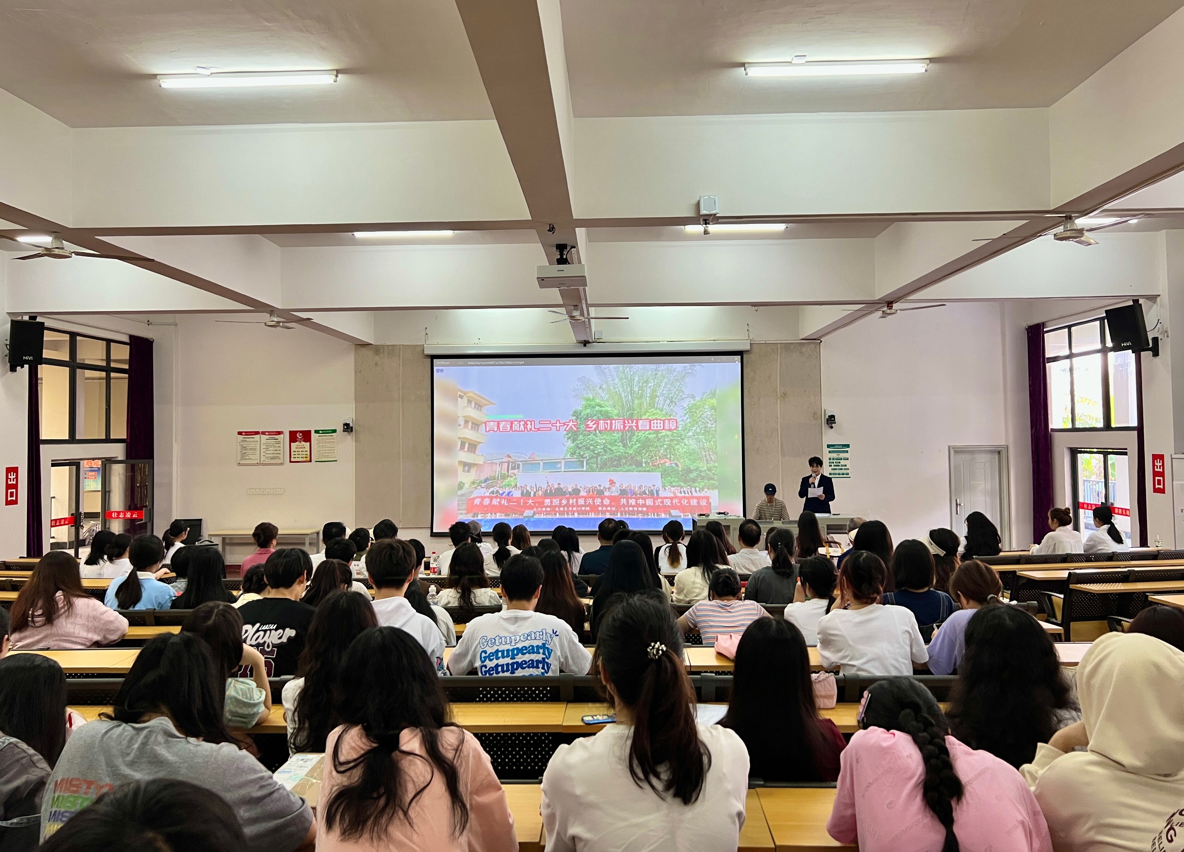 在主持人的带领下参会师生观看了我院各教研室代表教师与学生在曲樟乡开展产学研活动视频,视频展现了我校贯彻党的二十大精神,为乡村振兴事业注入新的希望和新的活力。