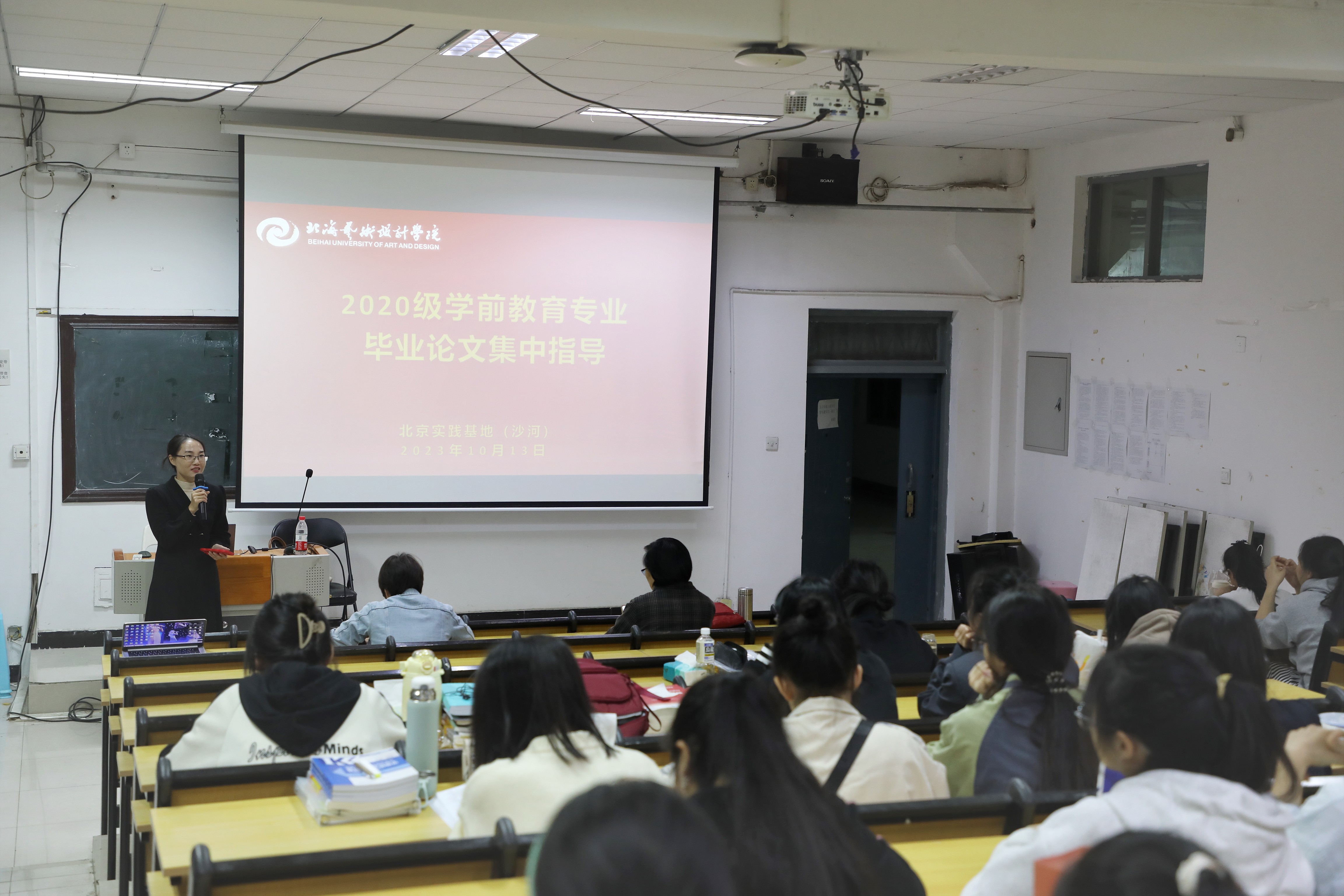 2023年10月13日晚上召集2024届学前教育专业学生进行毕业论文集中指导,针对毕业论文开题答辩出现的普遍性问题进行统一指导,提醒学生注意选题的清晰性与可行性、研究方法的准确性、调研材料收集的全面性、心态上的坚定性,在后续的学习和生活中要高度重视毕业论文研究、撰写工作,多阅读专业文献,积极与论文指导教师沟通,确保毕业论文研究、撰写工作顺利开展