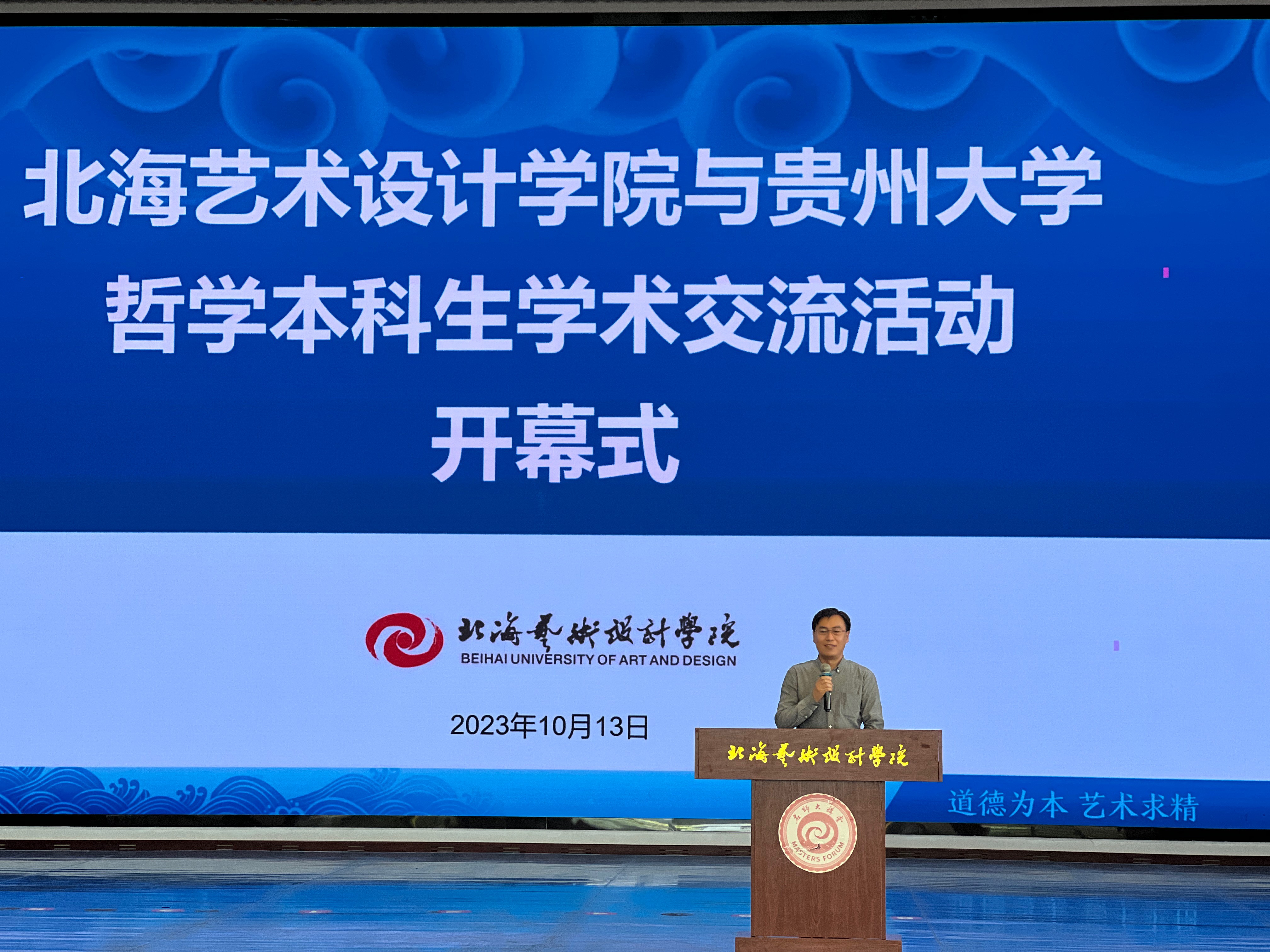 2023年10月13日,北海艺术设计学院与贵州大学哲学专业交流活动开幕式在北海艺术设计学院大礼堂举行。本次开幕式由北海艺术设计学院主办,贵州大学领导和师生受邀出席。