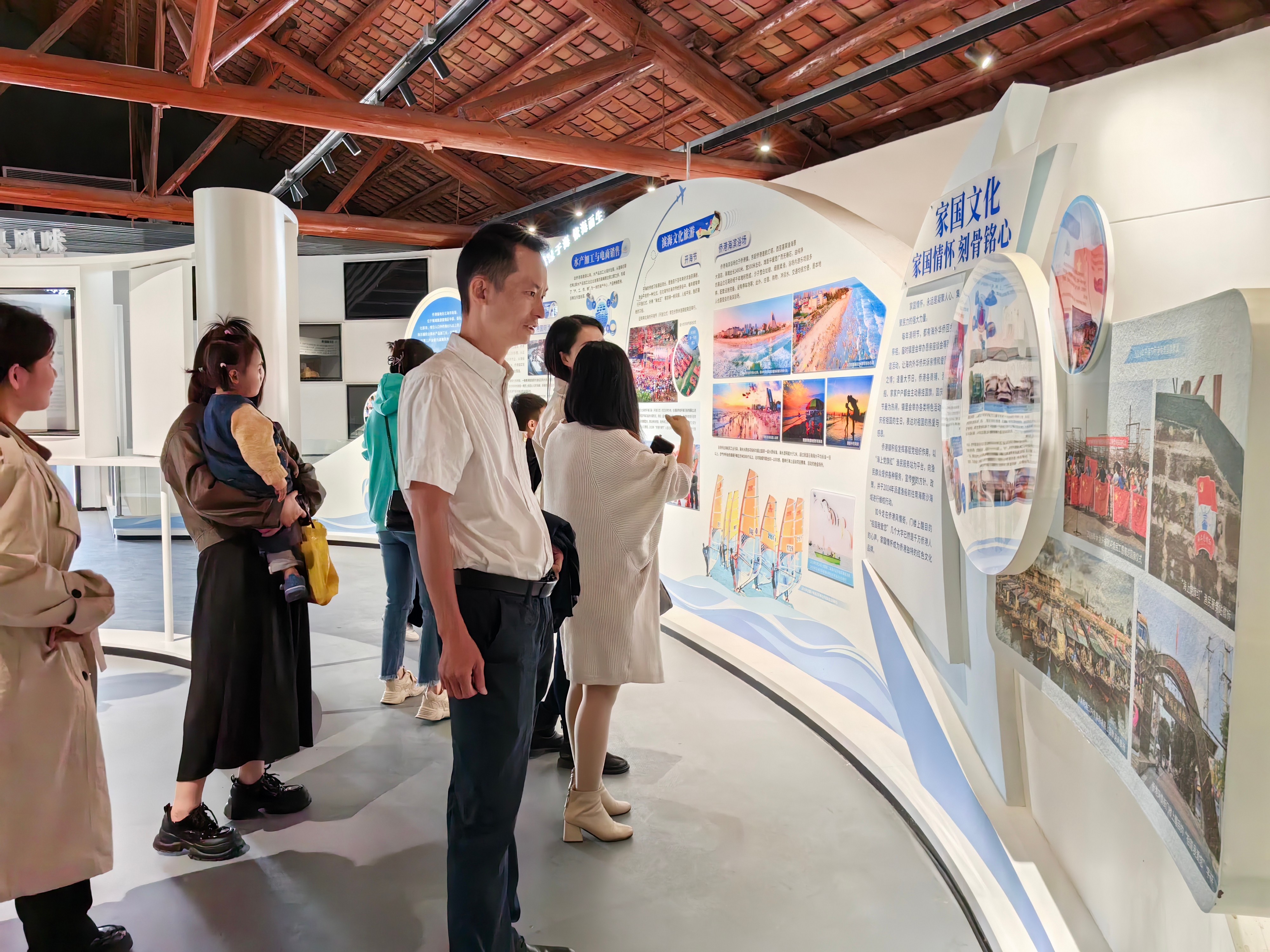 下午14时,全体教师党员来到侨港华侨历史展览馆参观学习。侨港华侨历史展览馆是利用现有的北海市华侨渔船修造厂内的旧加工车间及周边用房进行改造,展览馆占地面积约400平方米,一、二层建筑面积约600平方米,并配套商业建筑。展览馆以时间为轴线,通过图片、文物等展品从难侨归国、临时安置、基础设施建设、经济建设、三产融合发展等5个阶段进行布展,并开辟置家文化、归侨文化、美食文化、家国文化等展区,是充分展现侨港40多年来从无到有、从小到大、从弱到强、经济社会蓬勃发展、社会安定团结的建设发展过程的历史文化展馆。一件件文物、一张张图片都让党员教师们感受到了国家取得的历史性成就和海外华侨的家国情怀,也让大家感受到国家的富强是海外华侨最坚强的后盾。
