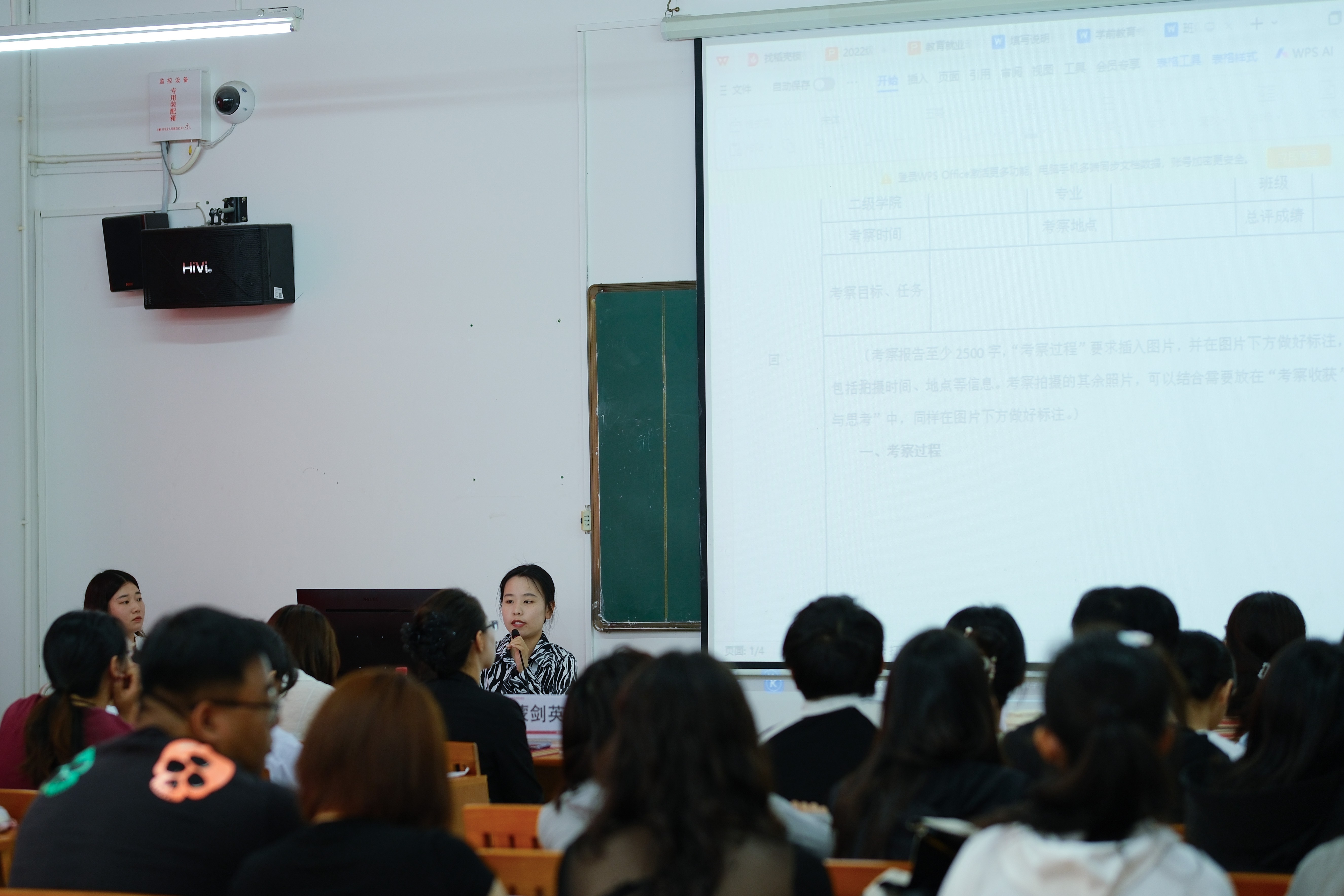 教研室主任覃思讲解学前教育专业实习与考察相关事宜,确保实习工作取得实效,促进学生知识、能力、素质的协调发展。