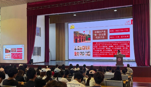 学院党支部书记宋慧敏在大会上把理想信念教育、爱国主义教育与党的 基本知识相结合,助力学生深入了解红色文化的内涵与价值,增强他们对红色文 化的认同感和归属感。