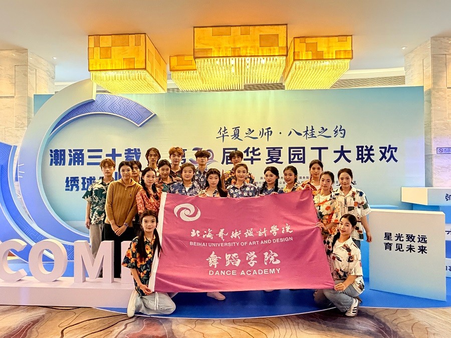 日,以“华夏之师,八桂之约”为主题的第30届华夏园丁大联欢活动在广西北海市成功举办。我校舞蹈学院30名师生光荣受邀,在此次活动中奉献了精彩表演,展现了新时代师生的艺术风采,为这场汇聚海内外华人教师代表的重要盛会增添了绚丽的艺术色彩。