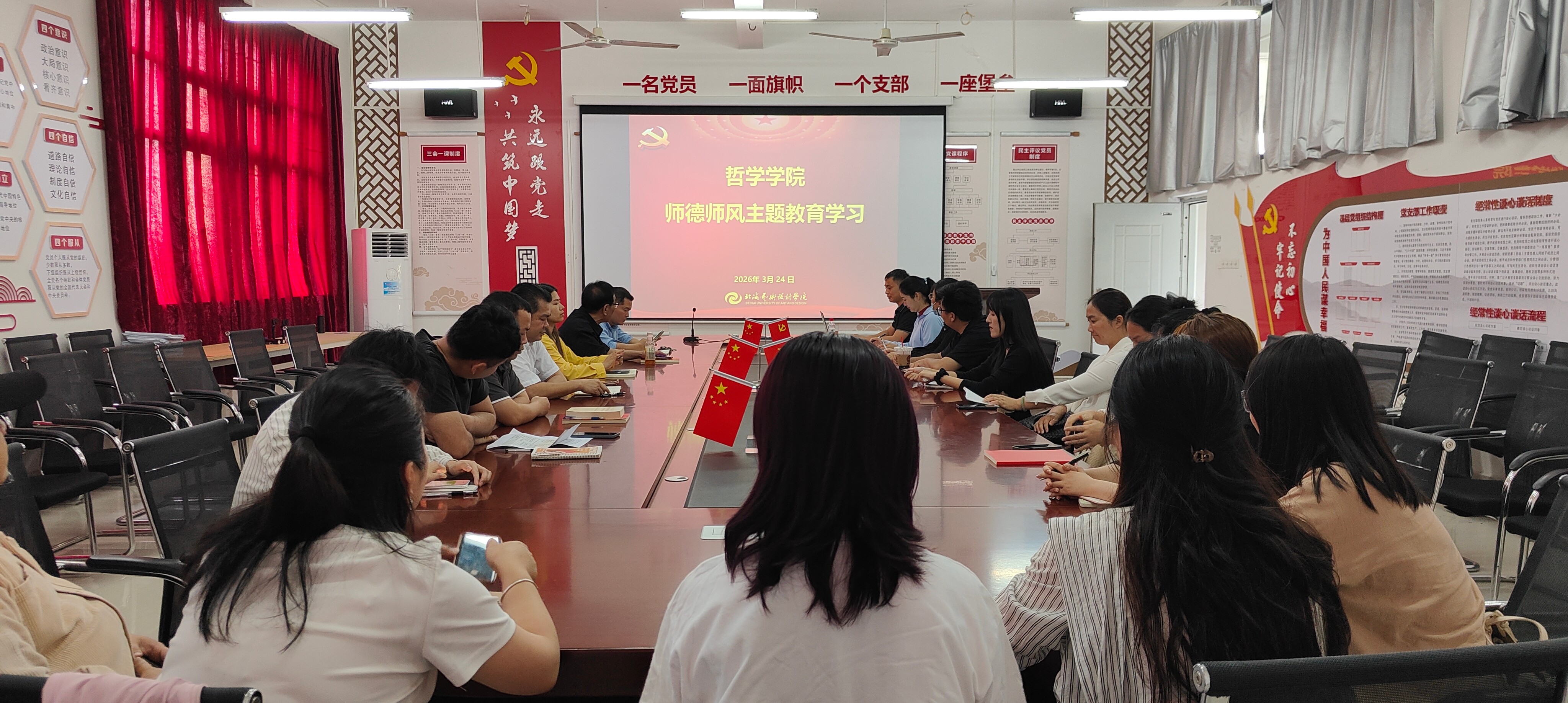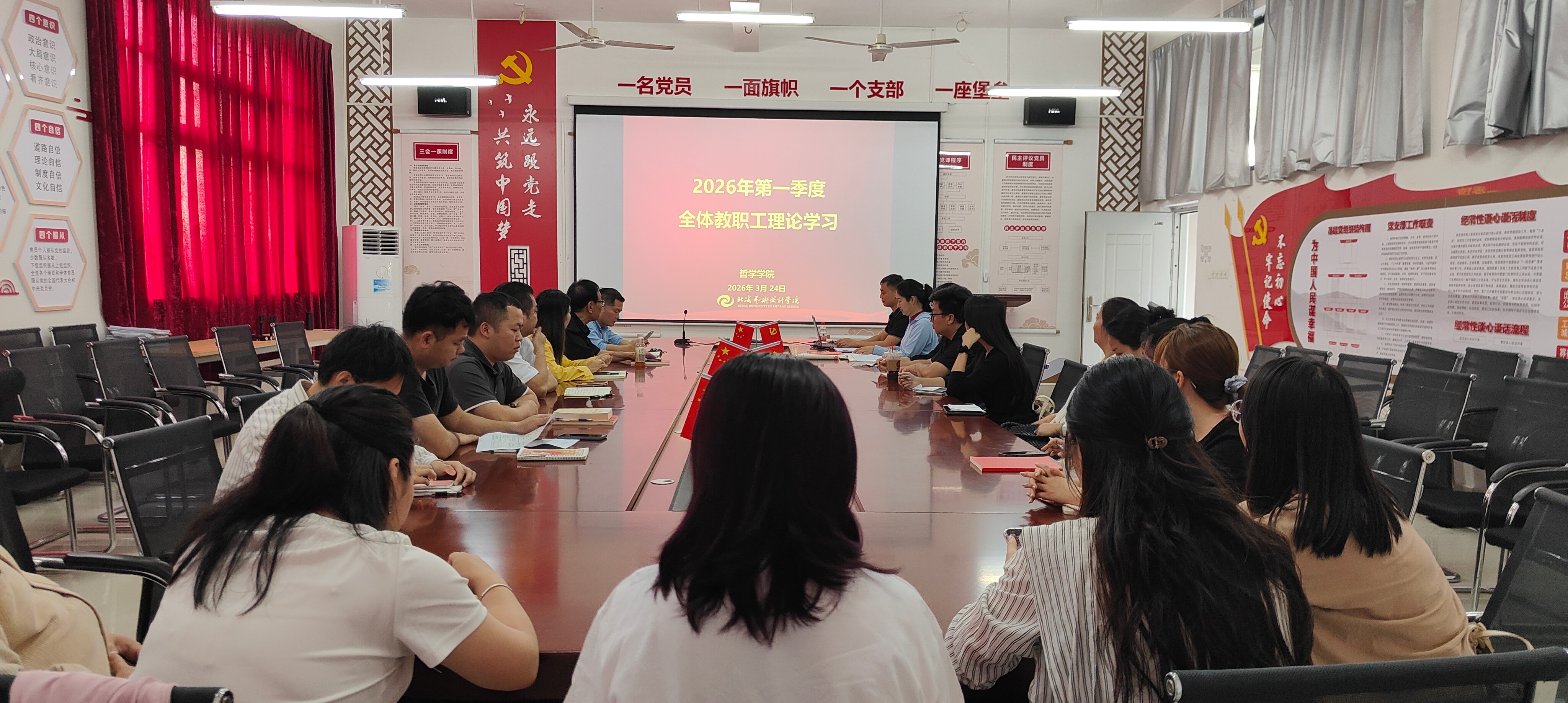 3月24日下午,哲学学院召开2026年第一季度全体教职工理论学习暨师德师风主题教育会,落实教师队伍思想政治和师德师风建设。学院党支部书记谢伟主持会议并讲话。