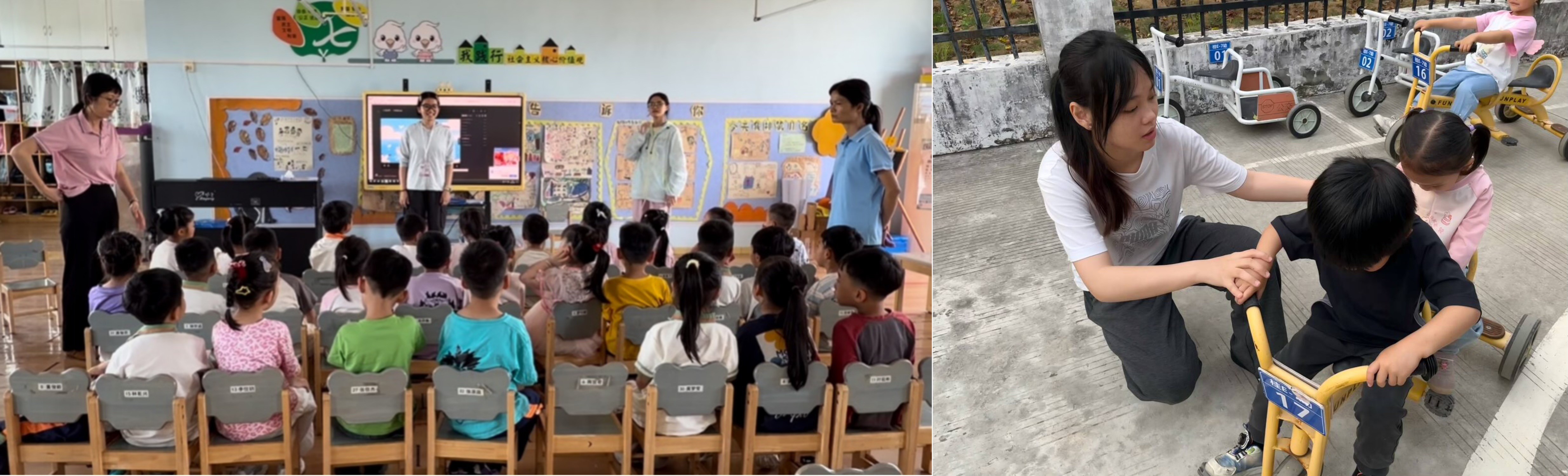 学前2302班蔡庭柯同学组织教学活动      学前2302班韦佳丽同学与幼儿游戏