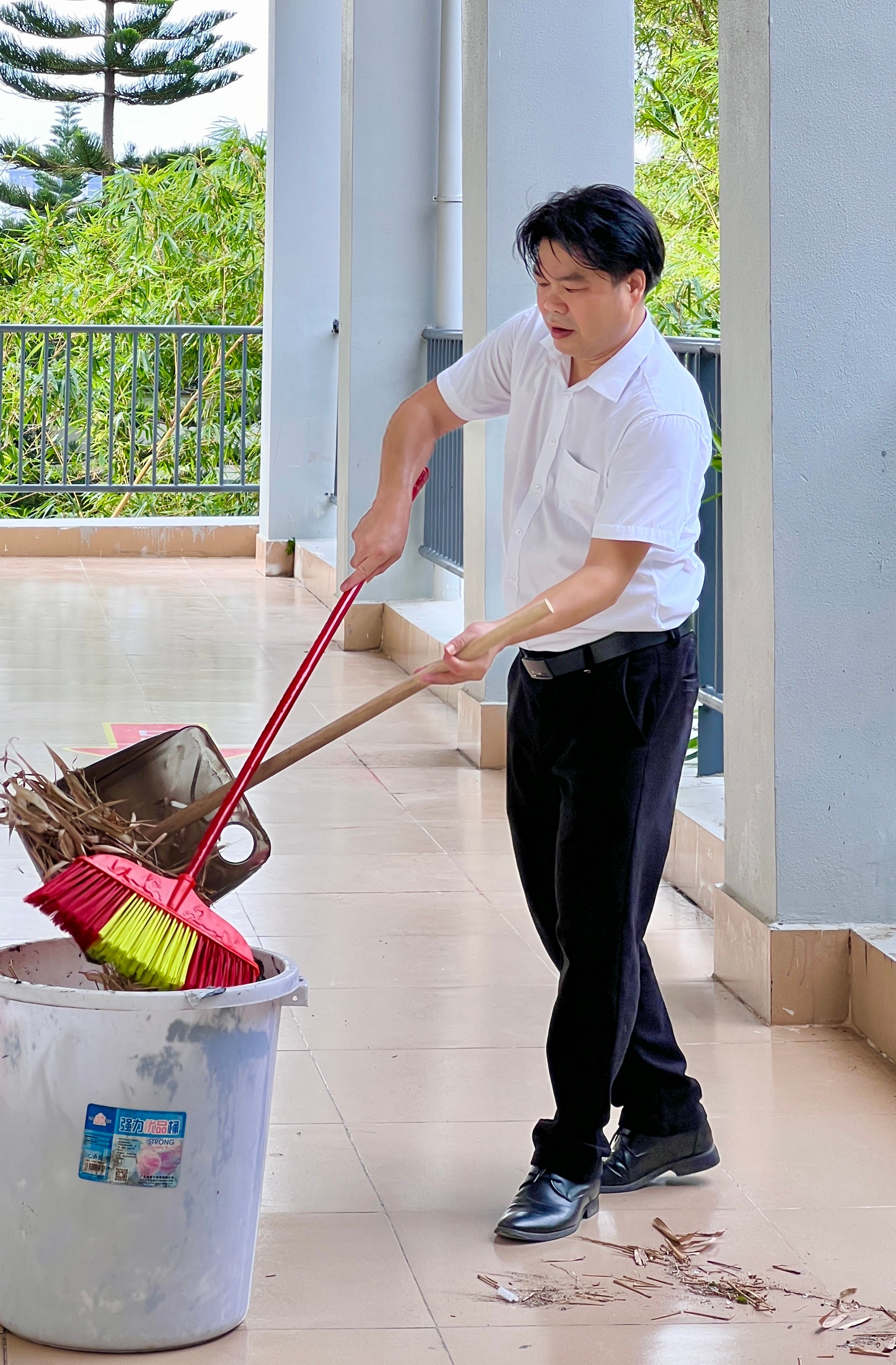 (李水亮副院长清扫垃圾)