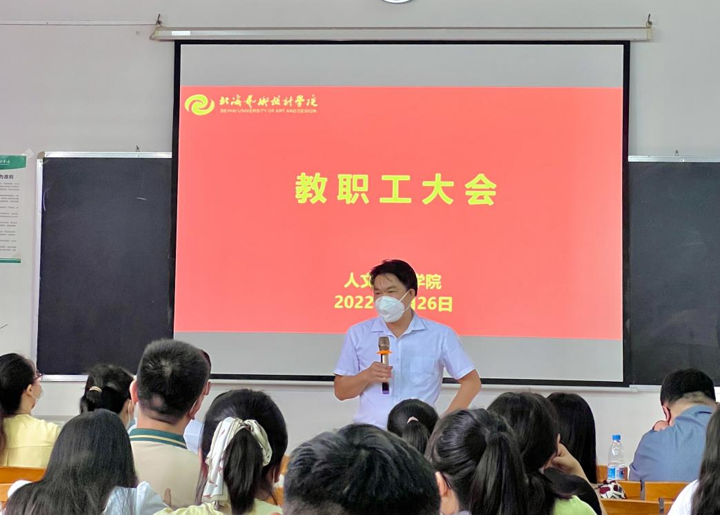 最后,刘承初书记对本次会议进行简要总结。刘书记强调,一要严肃师德师风,做好学生表率。二要严格意识形态责任,加强意识形态教育与学习,提高政治站位和思想素养。三要严肃安全意识,落实安全责任,做好疫情防控工作,要关心爱护学生,关注学生身心健康。(陈贞考/摄)
