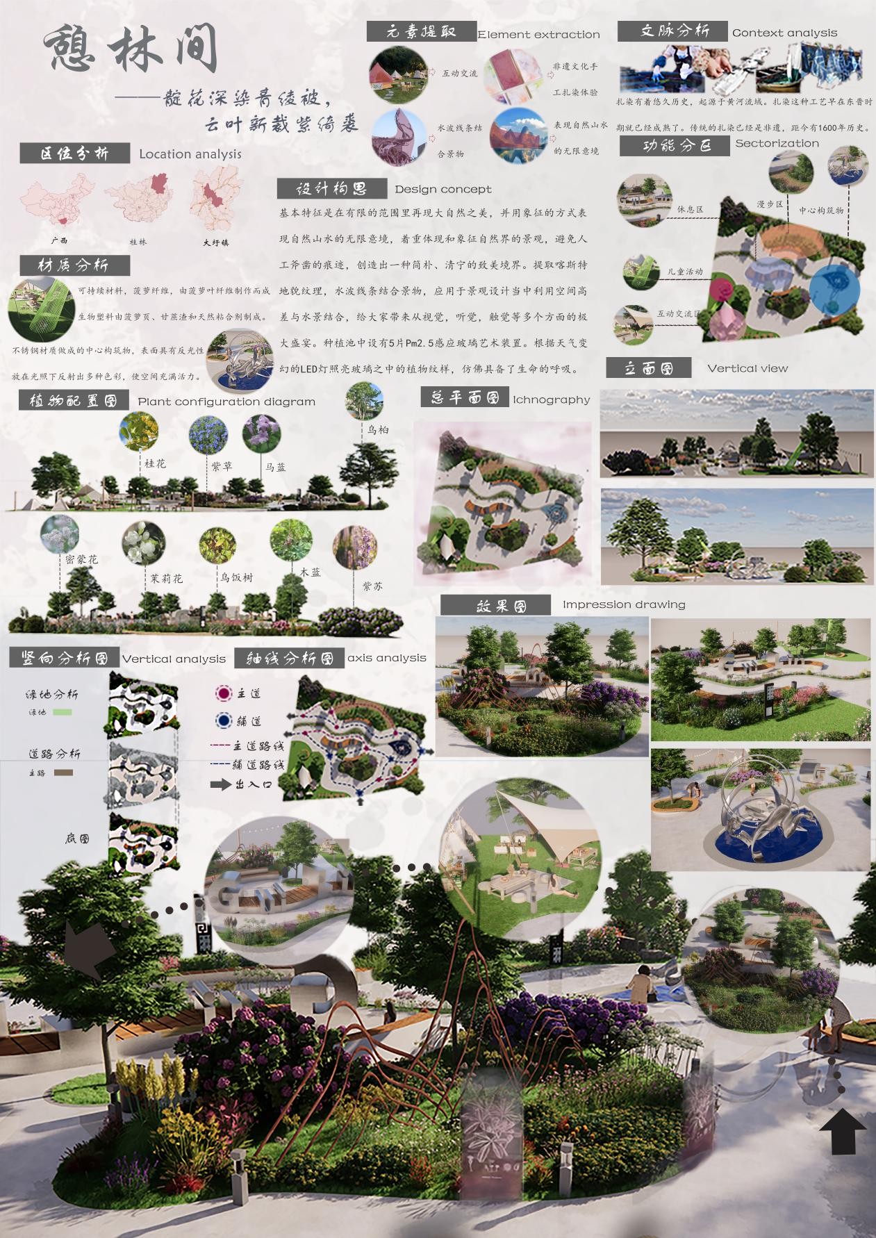 近日,由广西风景园林学会主办,桂林理工大学旅游与风景园林学院和东漓古村联合承办,广西大学林学院、广西艺术学院建筑艺术学院、桂林旅游学院旅游管理学院、玉林师范学院生物与制药学院/农学院、广西大学行健文理学院理工学部、广西建设职业技术学院建筑与规划学院协办的第三届广西“桂花杯”小花园设计竞赛圆满落幕。我校建筑与环境艺术学院学生作品《温竹摇》(作者:钟小雨、郭文静)获一等奖,《憩林间》(作者:徐子涵、郦嘉倩、裘嘉茵、朱潘格)获三等奖、《花间集》(作者:陈倩倩、刘雨薇、马晓晓、黄莹、温文丽)获三等奖,建筑与环境艺术学院昌秋霞老师获“优秀指导教师”荣誉,我校获“优秀组织单位”荣誉