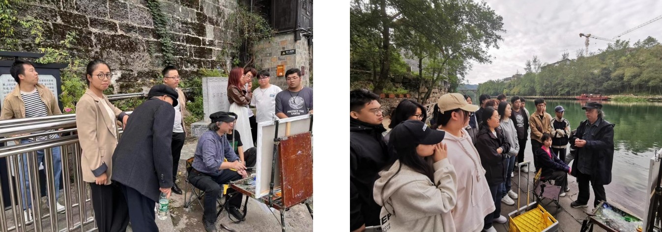 1018日,美术学院教师带领2021级绘画专业学生前往独具民族特色的湖南湘西土家族苗族自治州花垣县边城镇以及湖南湘西土家族苗族自治州凤凰凤凰古城进行专业采风写生实践活动。本次写生目的在于通过近距离感受湘西土家族苗族自治州的自然风光和风土人情,深入了解艺术源于生活而又高于生活的含义,转变学生绘画思维,从而创造出更具生命力的作品。