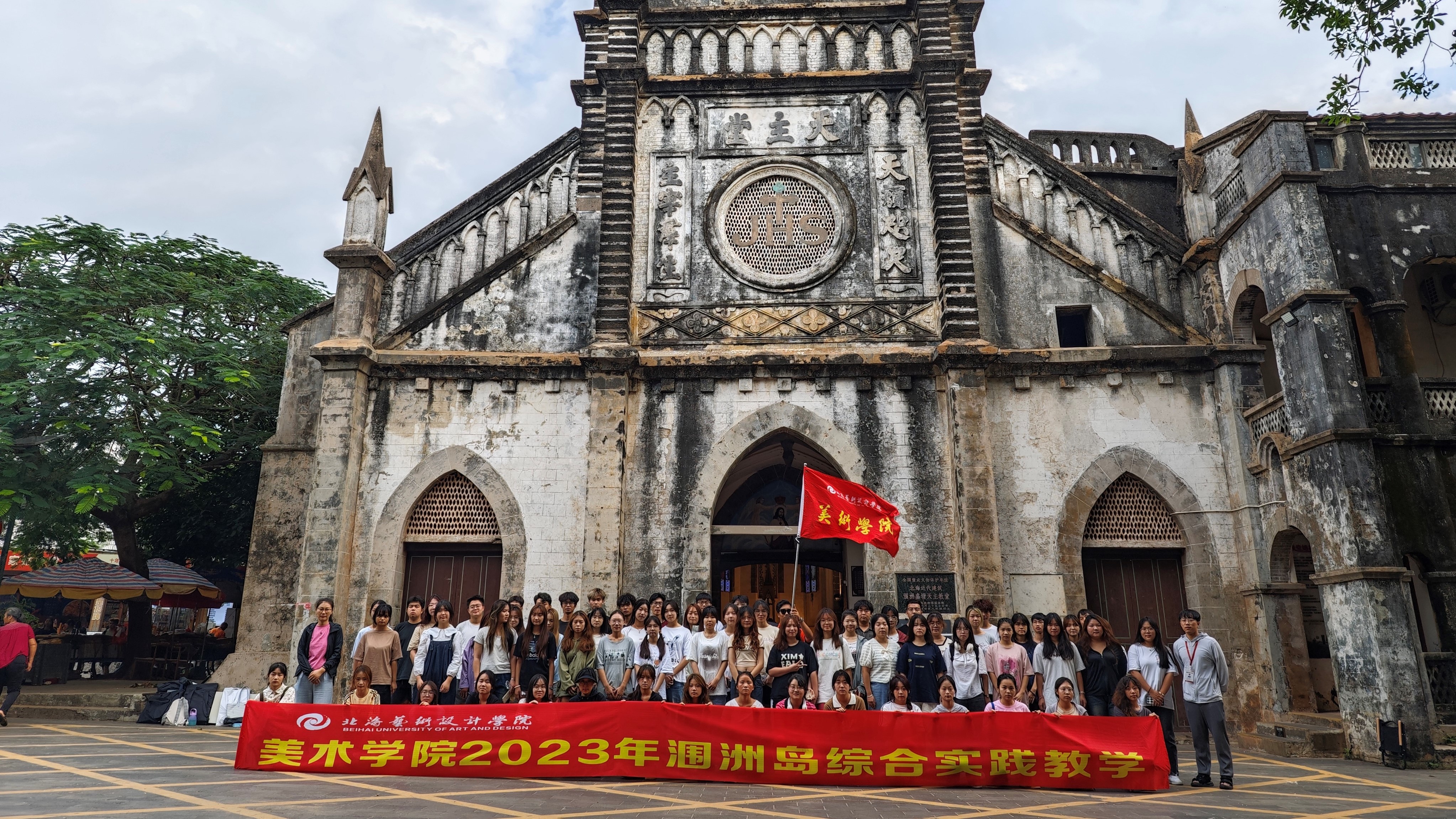次日,学生们在教师的带领下前往涠洲岛教堂、南湾码头、涠洲岛火山国家地质公园等地开展教学实践活动。