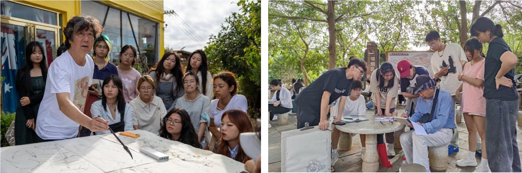 每天,教授和老师们通过现场讲授、作范画及逐个辅导等方式从取景、构图、光线、色调等方面悉心为同学们进行指导。晚上有序组织各班级开展集中讲评活动,指出画面中的优点和不足,分析存在问题,总结得失。