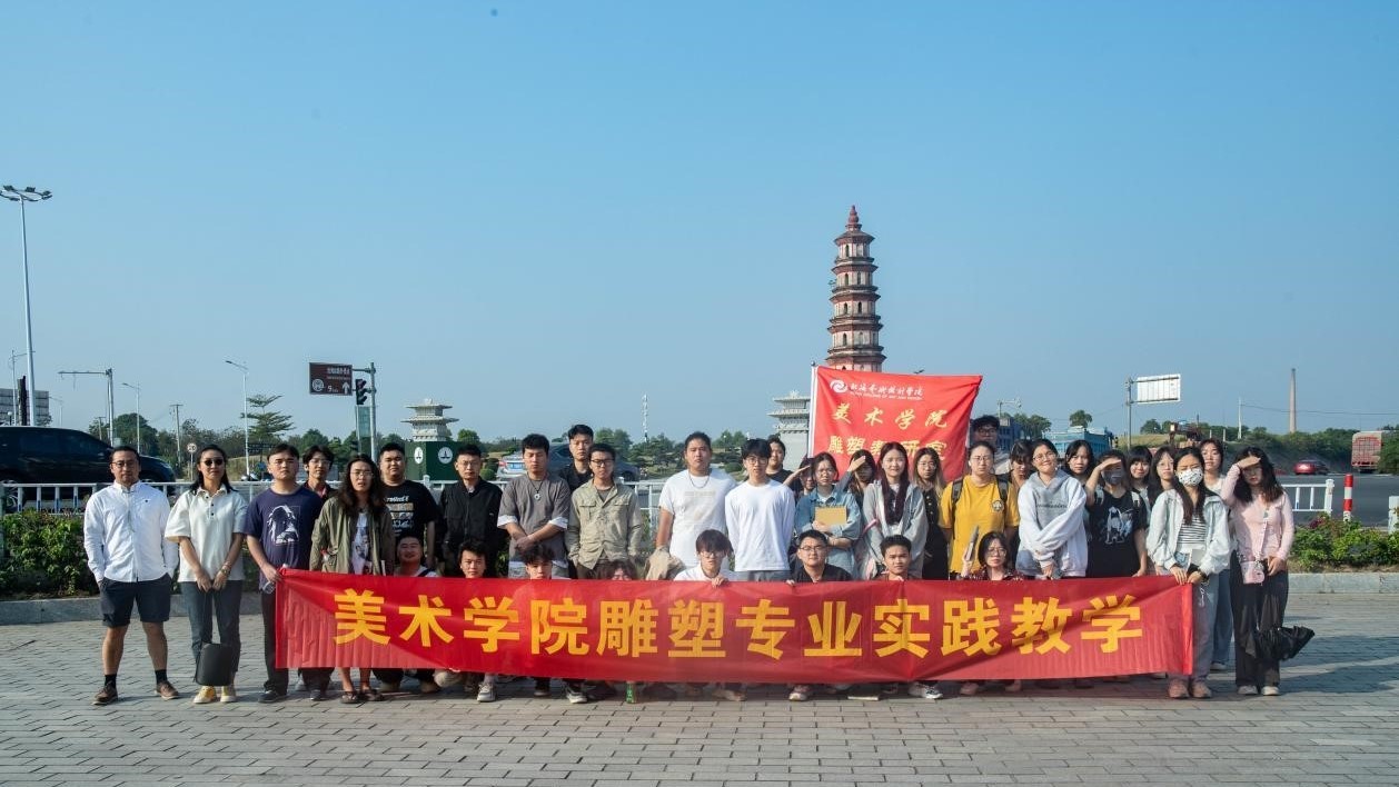 20231128日上午美术学院2021级雕塑专业《传统雕塑》课程师生40余人在美术学院副院长金凯婧和专业课教师矫石、林盼鑫的带领下,前往合浦汉代文化博物馆开展实践教学活动。