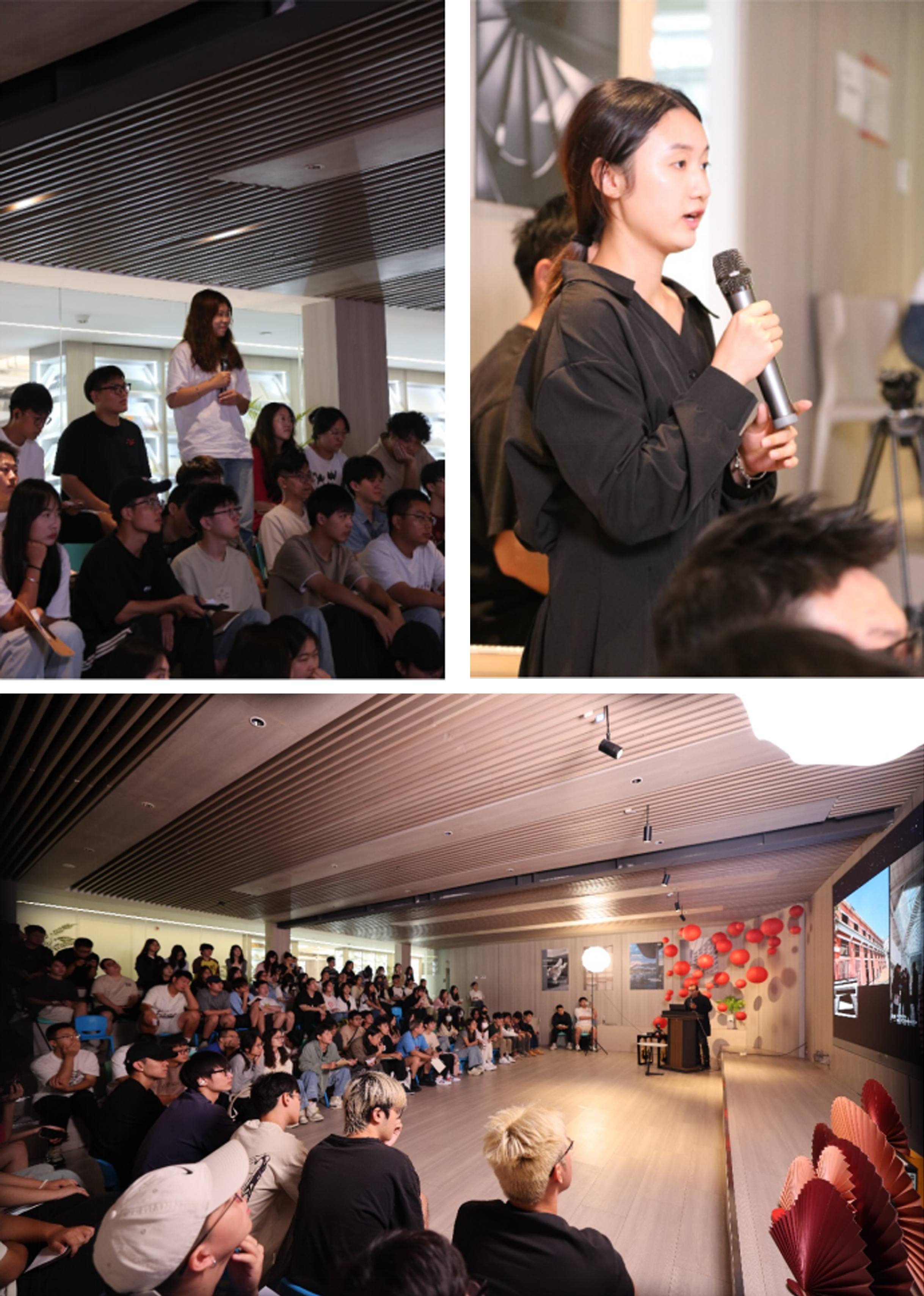 在课堂的最后一刻钟,同学们积极的对张云老师提出心中的问题,例如:张云老师平时灵感匮乏的时候应该怎样去寻找灵感;张云老师在成立团队的时候是先成立了团队,还是在路上寻找志同道合的伙伴;近年来大环境对于环艺专业的同学不是特别的友好,作为环艺专业的