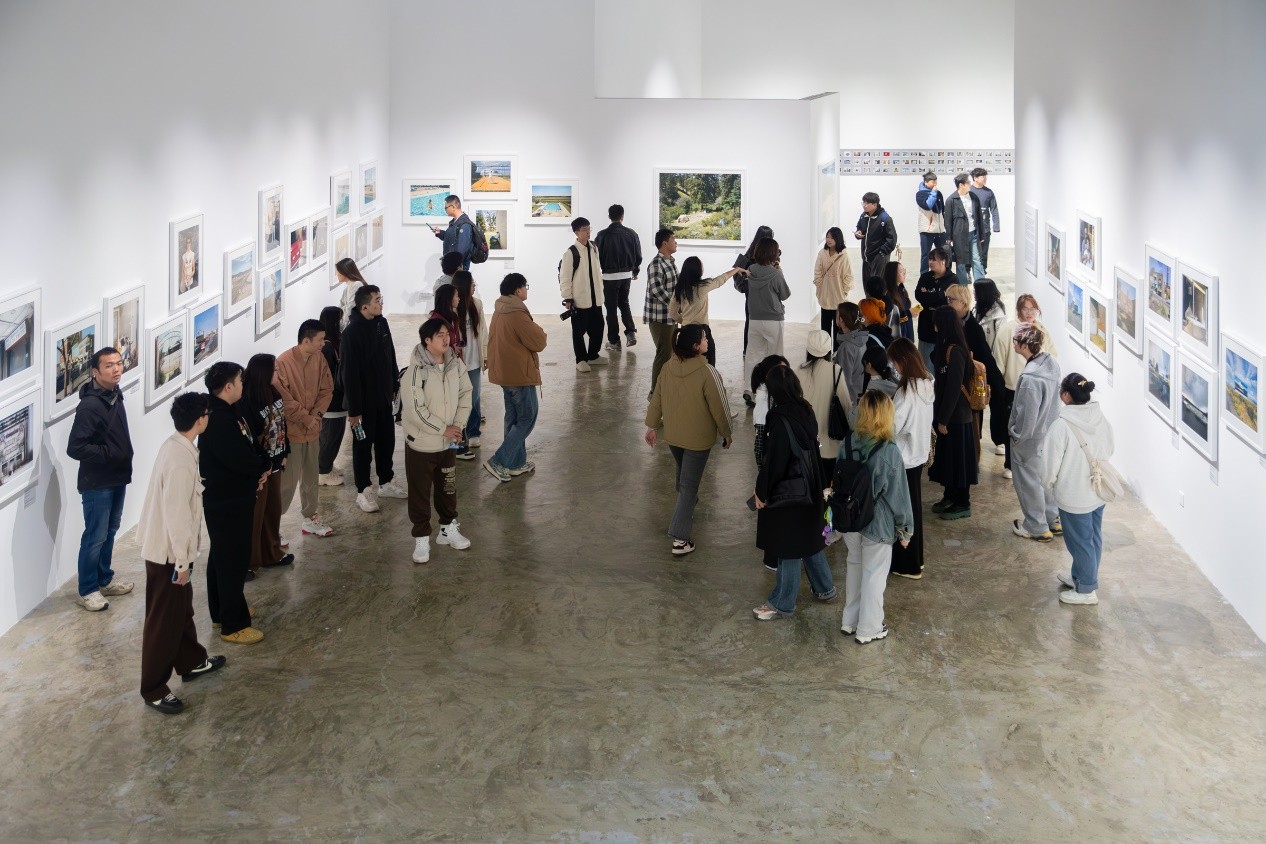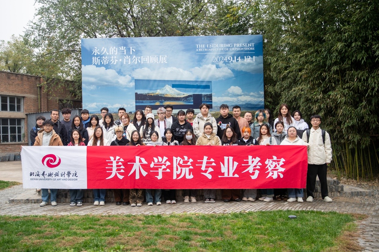 在考察活动中,学生们参观《永久的当下:斯蒂芬肖尔回顾展》。作者“肖尔在摸索各种不同的观看方式和摄影技术、拍摄过程和印制工艺以及创作主题和媒介。将色彩作为一个有机整体元素,与形状、平面、纹理、线条、倒影、物体、人物、透视和瞬间一起用于拍摄美国文化和社会景观影像的先驱之一。从这些普通事物、场景和人物的表象中发现不寻常之处。不只是要赞美大自然中存在的美丽色彩,而是要发现作者所体验到的色彩与现实世界中其他元素之间的关系,进而创造出彩色摄影所能产生的新的隐喻和美学。作者与其他几位摄影家一起,使彩色摄影成为艺术媒介做出了贡献。是唯一横跨 "新彩色摄影 " "新地形摄影 "两个流派的摄影家。”——摘自三影堂摄影艺术中心网站介绍