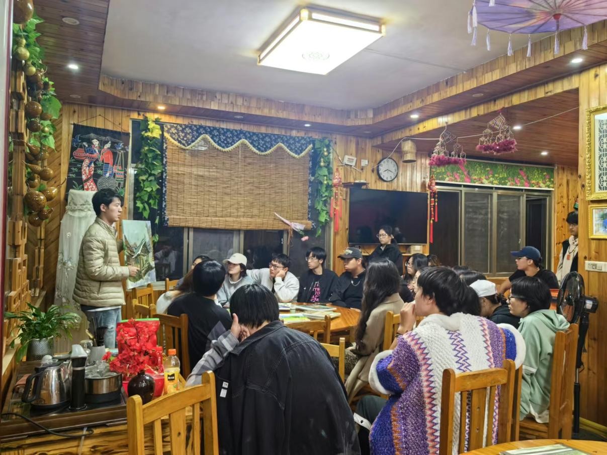 写生过程中陈政军教授与龙义敏教授为方便学生最直观、最快速地了解自己所在专业的基本特性,进行了写生示范与点评,并分别针对绘画和美术学专业开展了《人文关怀·与时俱进·实验创新—绘画艺术创作之我见》《创作表现(画面结构、形的变化)》讲座,学生反映热烈,纷纷表示收获颇丰。除两位教授外,学院自有教师也分别对任教班级进行了写生示范与作品点评。学习之外,师生们一起参加了当地的百家宴活动。在教授和自有教师的通力合作下,学生们的写生实践充实而有趣。