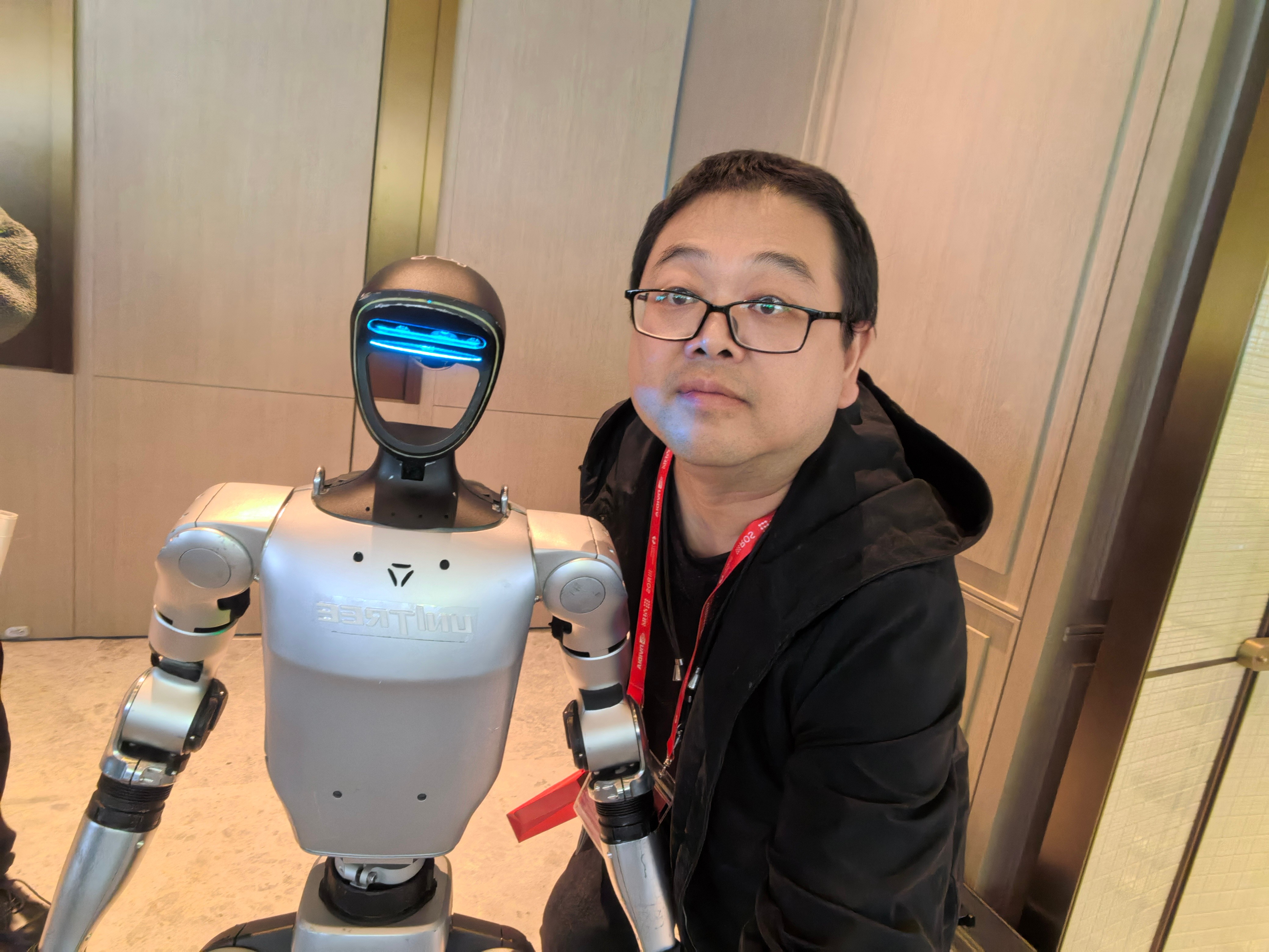 与机器人合影