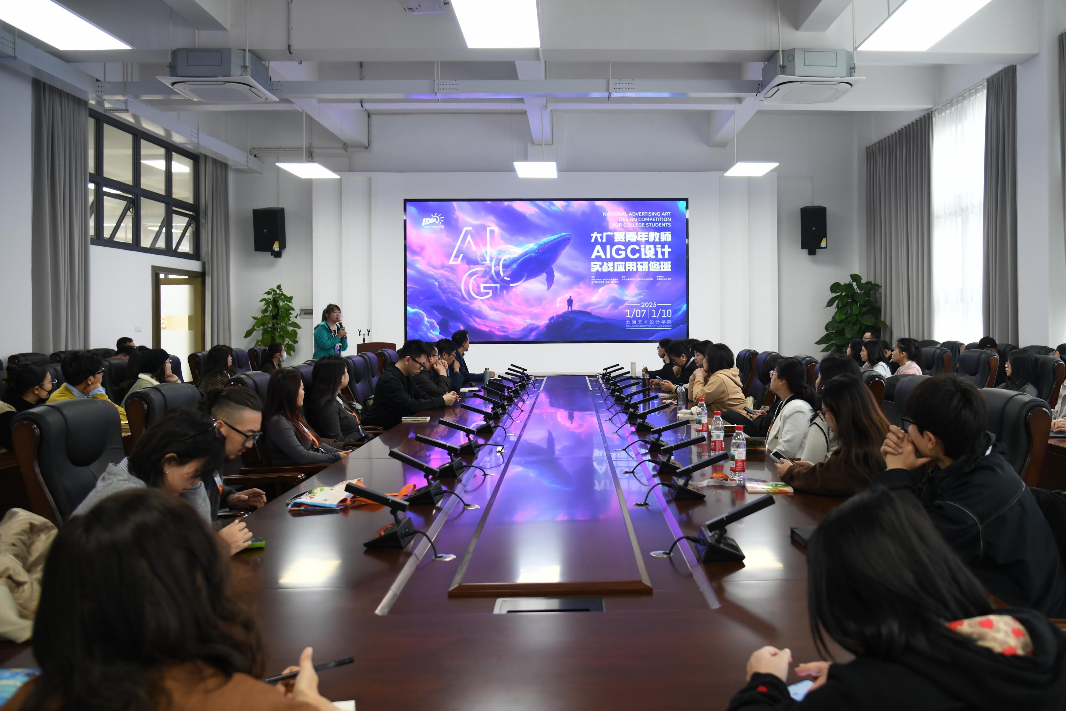 2025年1月7日,全国大学生广告艺术大赛(简称“大广赛”)“青年教师AIGC设计实战应用研修班”在我校艺德楼8楼会议室拉开帷幕。此次研修班由全国大学生广告艺术大赛组委会、大广赛文化传播(北京)有限公司主办。来自全国各高校的50余名教师齐聚于此,将参与为期4天(1月7日至1月10日)的培训学习,共同探索AIGC设计领域的新知识与新技能。
