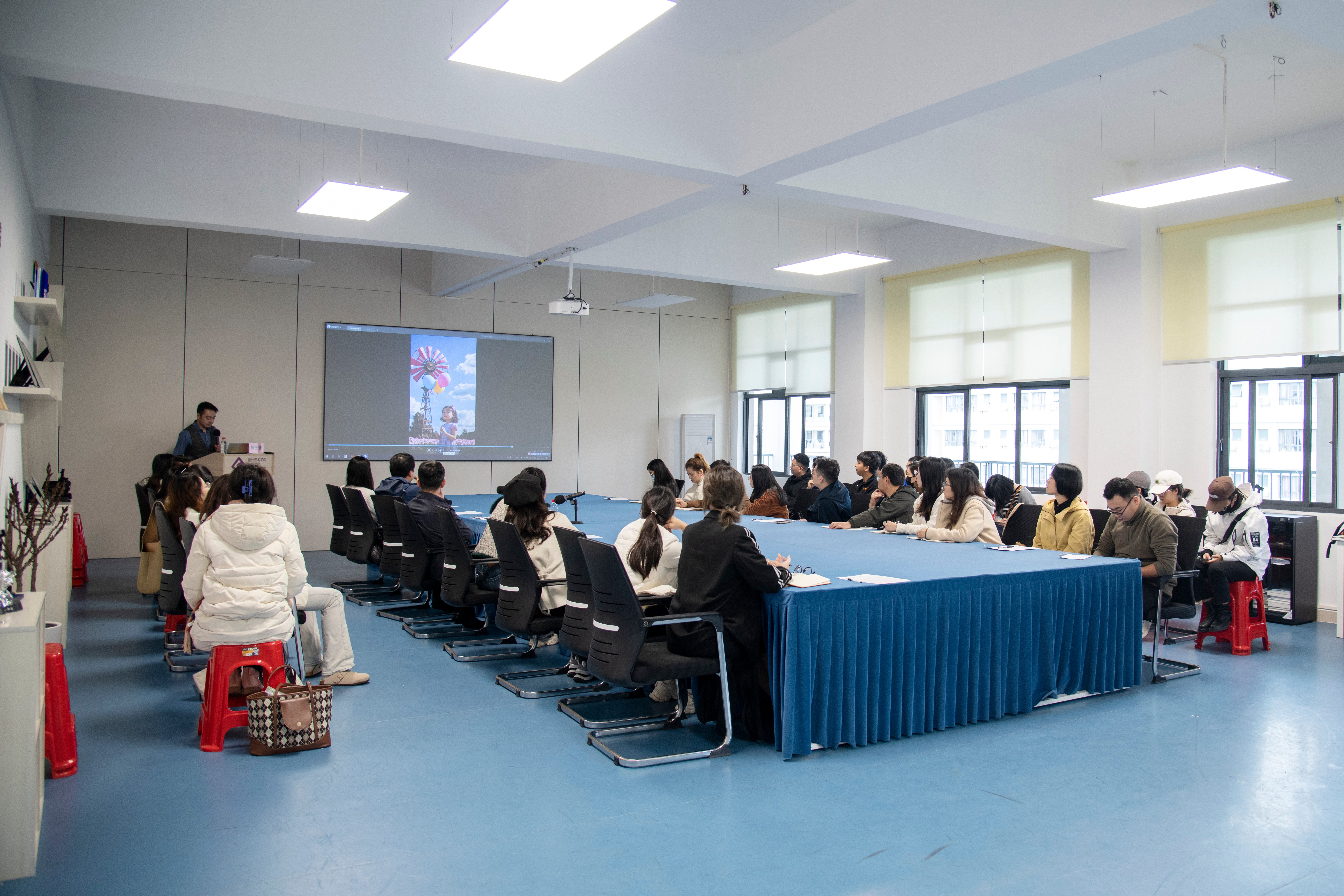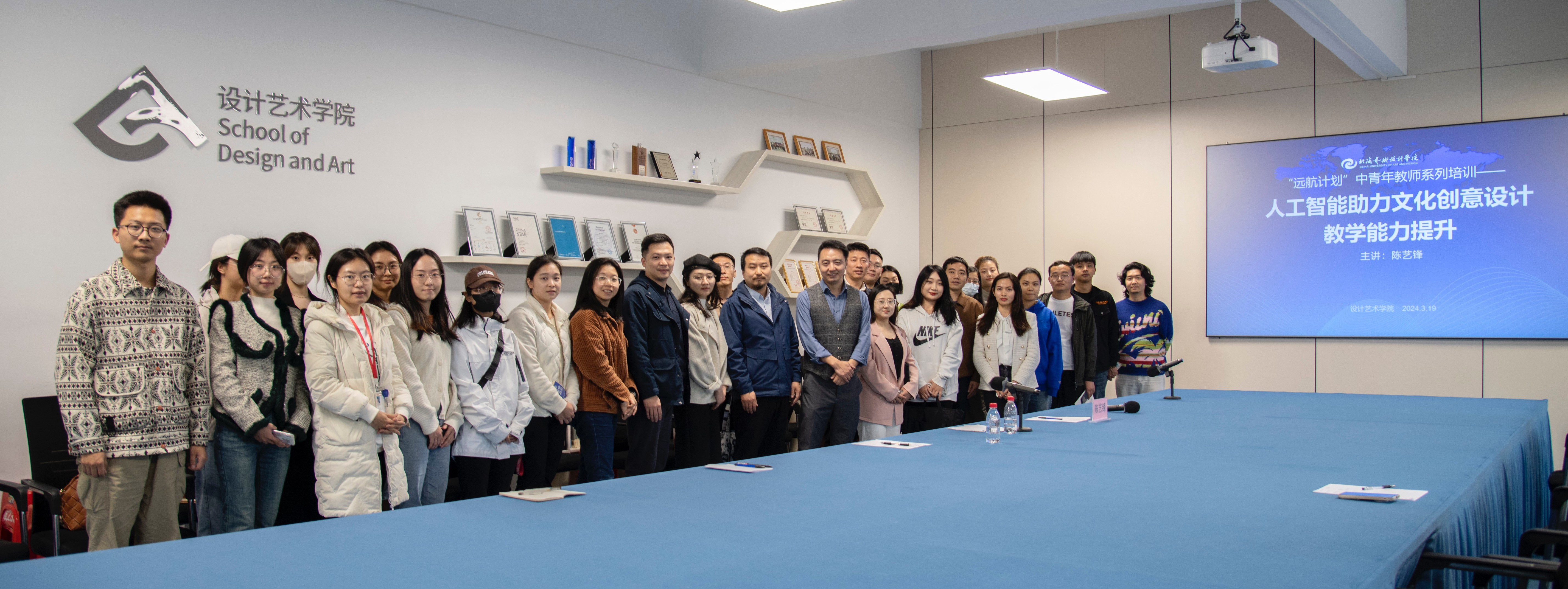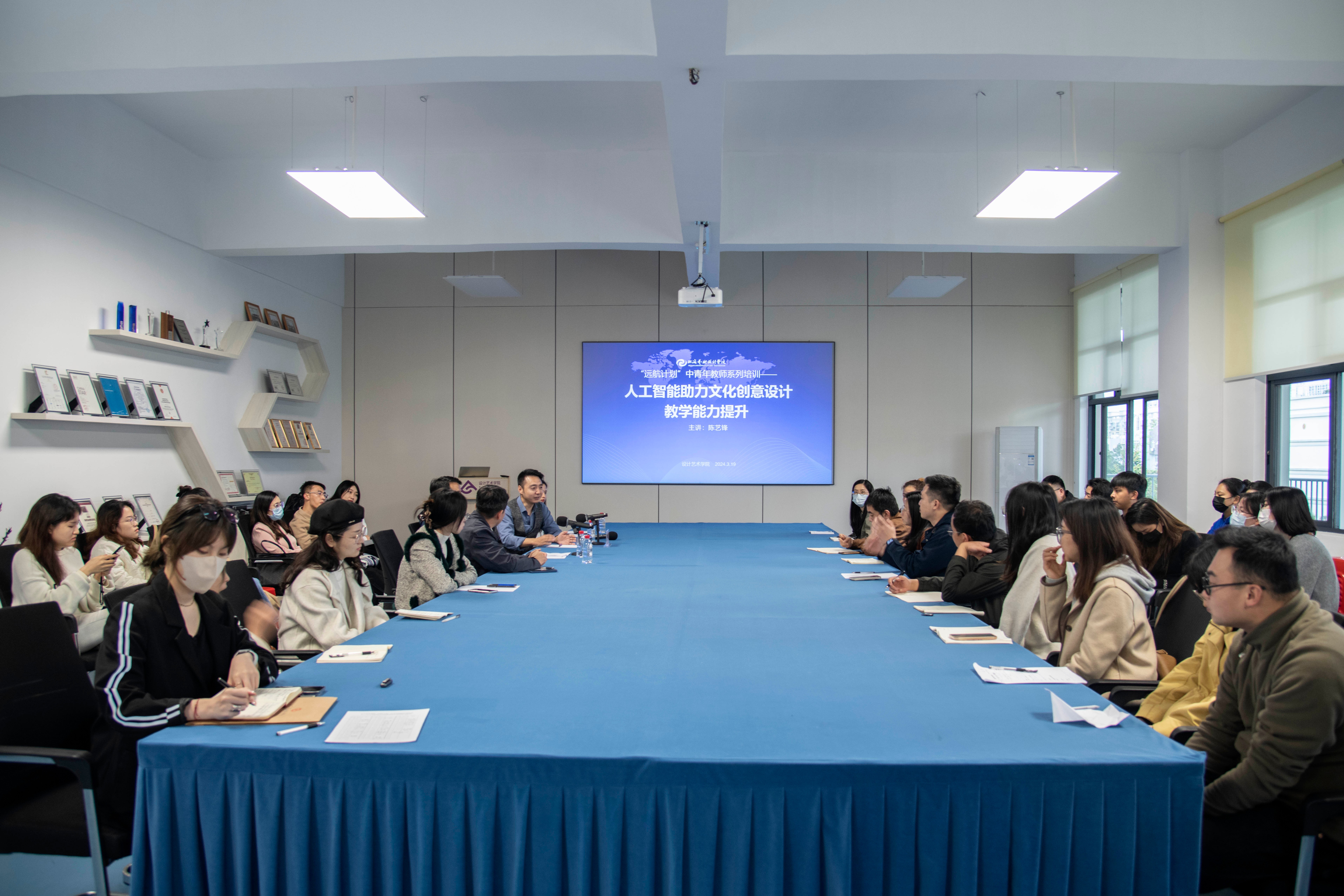 本次培训在设计艺术学院伦理楼408室开展,学院党总支书记黄锦、院长李林平、副院长白建强、实验室主任郑哲瀚及众多教师共同参加,聆听陈艺锋教授的精彩分享。