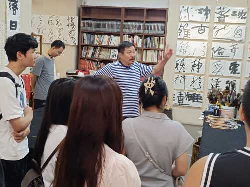 2025年9月6日,教研室副主任张天赋带领书法学院2022级学生分批前往北京周剑初五体书法馆开展研学活动。通过近距离观摩当代书法名家周剑初的代表作品,学生们深入理解“五体兼修”的艺术理念,并与周老师展开亲切交流,收获颇丰。
