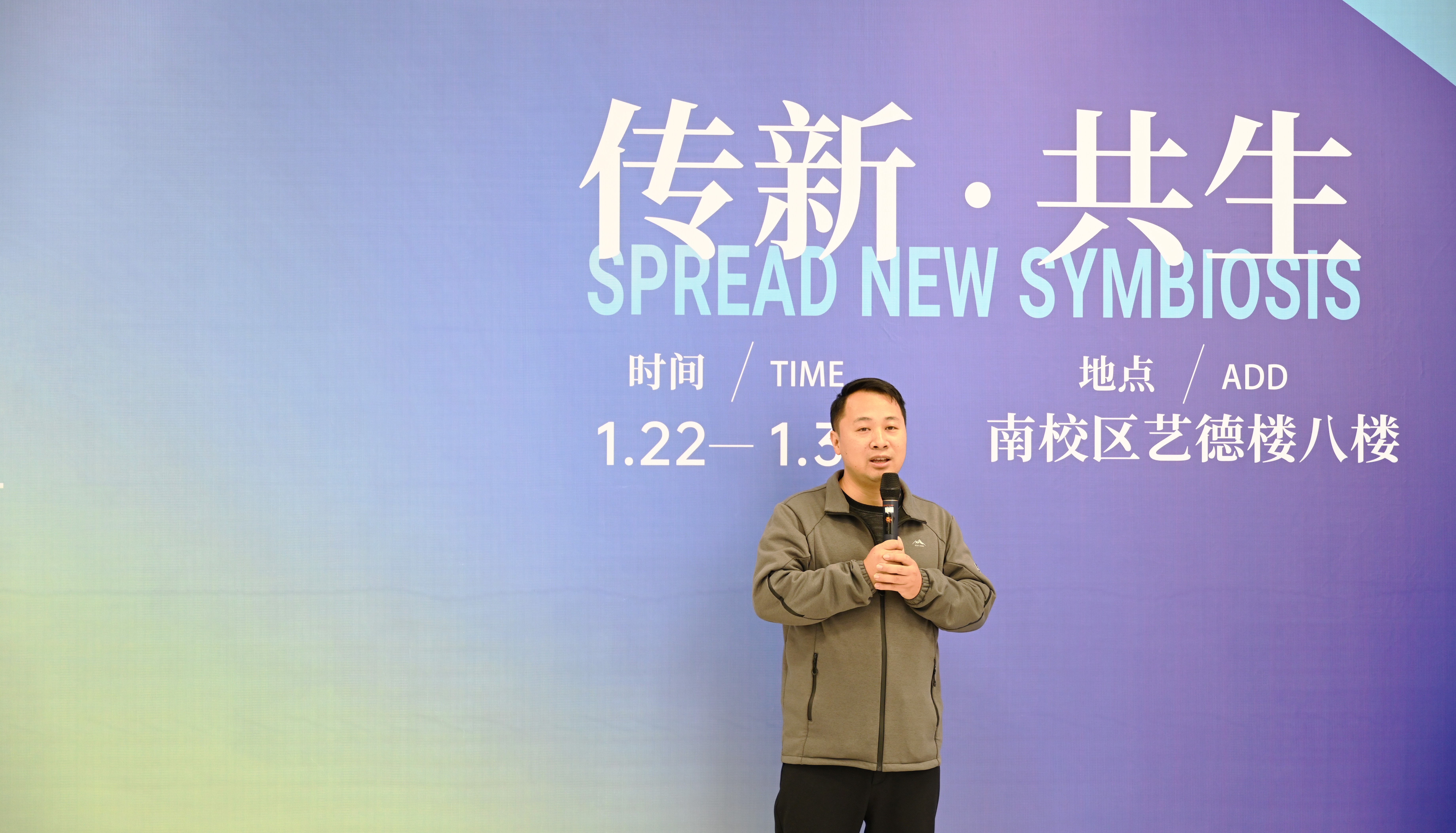 教师代表黄千羽对“传新·共生”主题内涵作了进一步阐释,并对学生创意成果给予肯定。她鼓励学生保持对文化传统的敬畏与对创新探索的热忱,期待本次展览成为传承与创新并重的新起点。