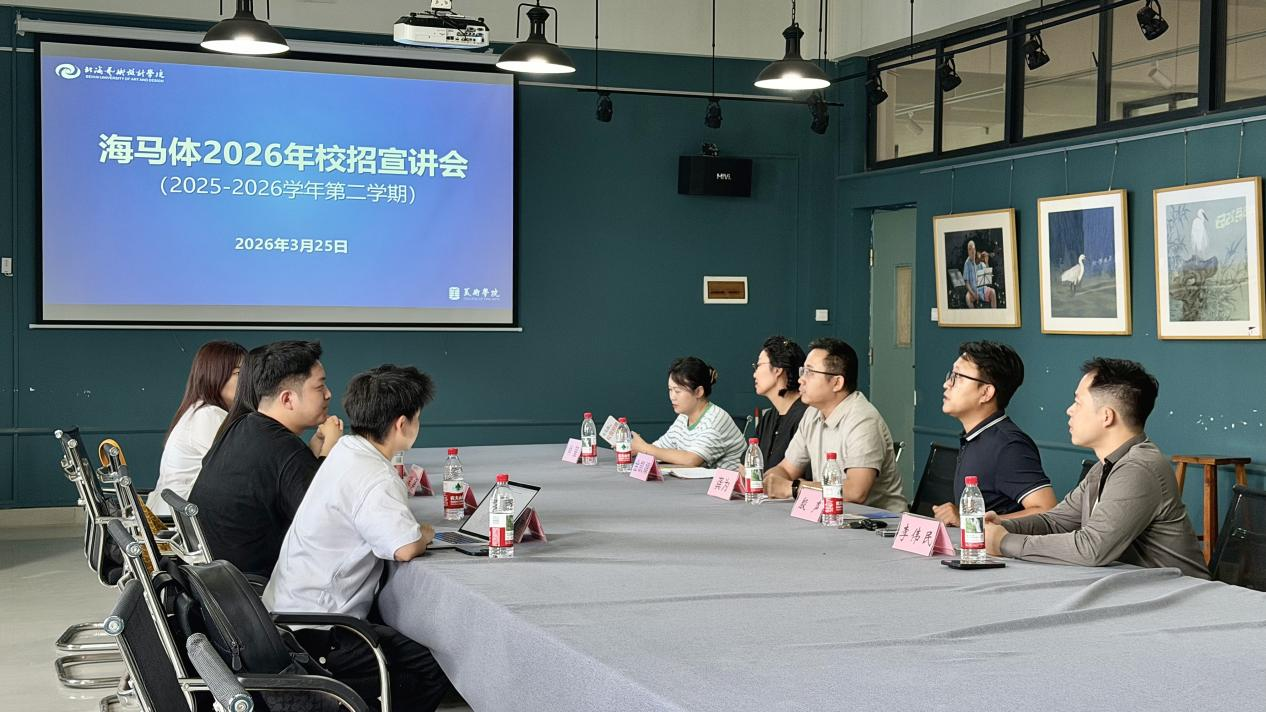 2026年3月25日,北海艺术设计学院美术学院与杭州海马体集团开展校企合作会谈暨校招宣讲活动,双方围绕人才培养、实习合作等事宜深入交流,达成多项合作共识,进一步推动产教融合走深走实,助力美术学院高素质应用型艺术人才培养。