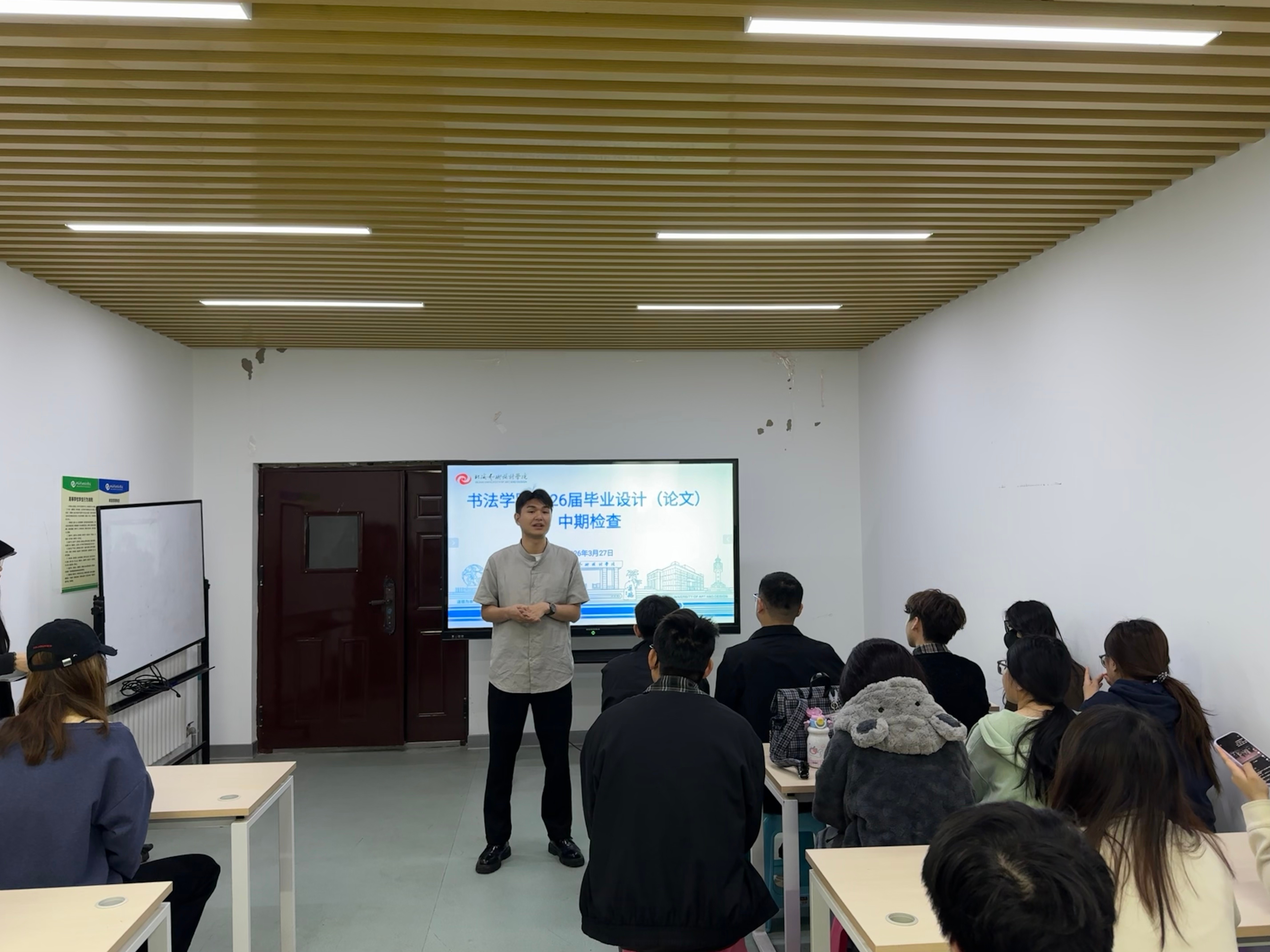 为规范毕业设计(论文)管理工作,掌握学生毕业设计(论文)工作进展及指导教师的指导情况,我院党支部书记喻广林、教师代表闫鹏于近日前往北京实践基地宏福校区,开展了书法学专业2026届毕业设计(论文)中期检查工作。