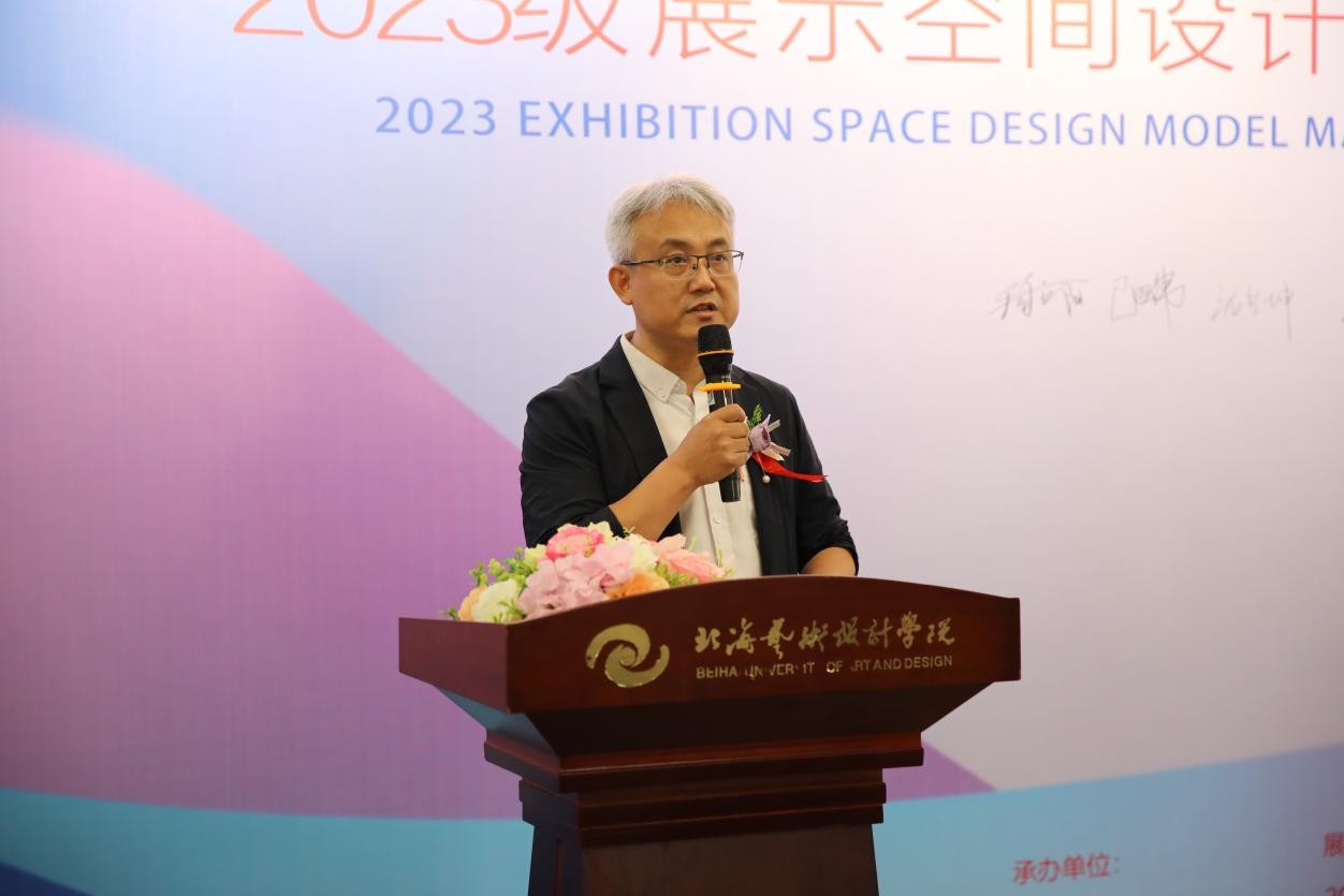 2026年4月3日,金橄榄设计大赛第三届“美丽中国·文化之美”2023级展示空间设计模型制作成果展在北海艺术设计学院南校区艺德楼八楼展厅举行。本次展览由建筑与环境艺术学院主办,学院环境设计教研室承办,建筑与环境艺术学院党总支、学工办、综合办、分团委联合协办,为师生搭建了展示专业成果、交流设计理念的重要平台。