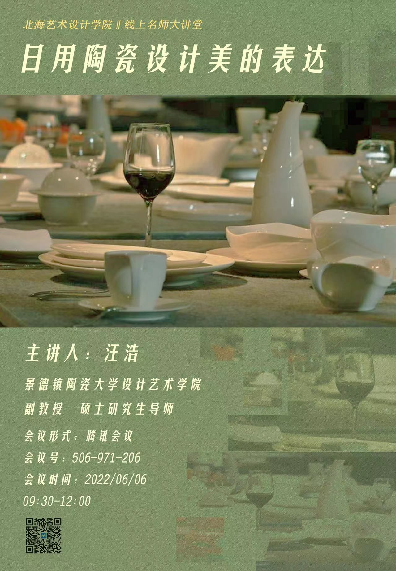 2022年6月6日上午,美术学院邀请景德镇陶瓷大学设计艺术学院副教授汪浩老师为全院师生开展了题为《日用陶瓷设计美的表达》的讲座,以线上、线下的形式同时进行。