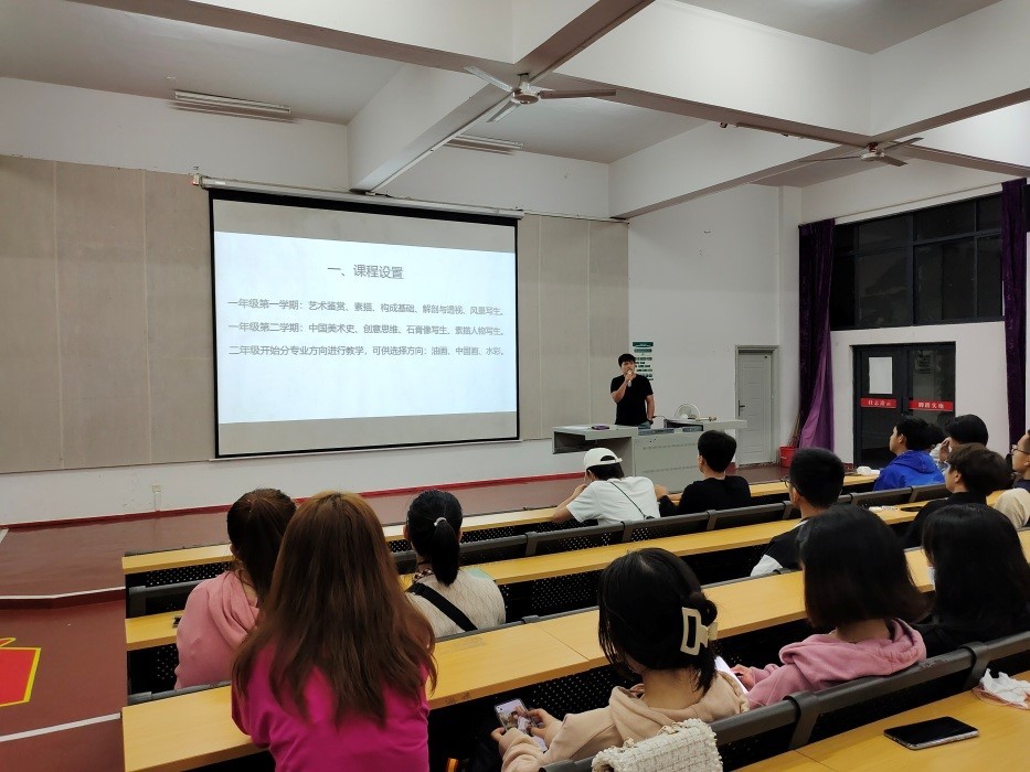 学风教育讲座之后,由绘画教研室主任张湘中老师为2021级绘画专业学生展开了绘画专业介绍。(肖玺 摄)