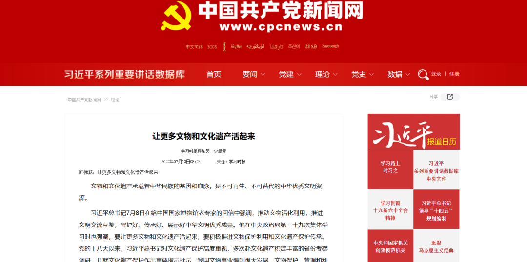 自党的十八大以来,习近平总书记对文化遗产保护高度重视。