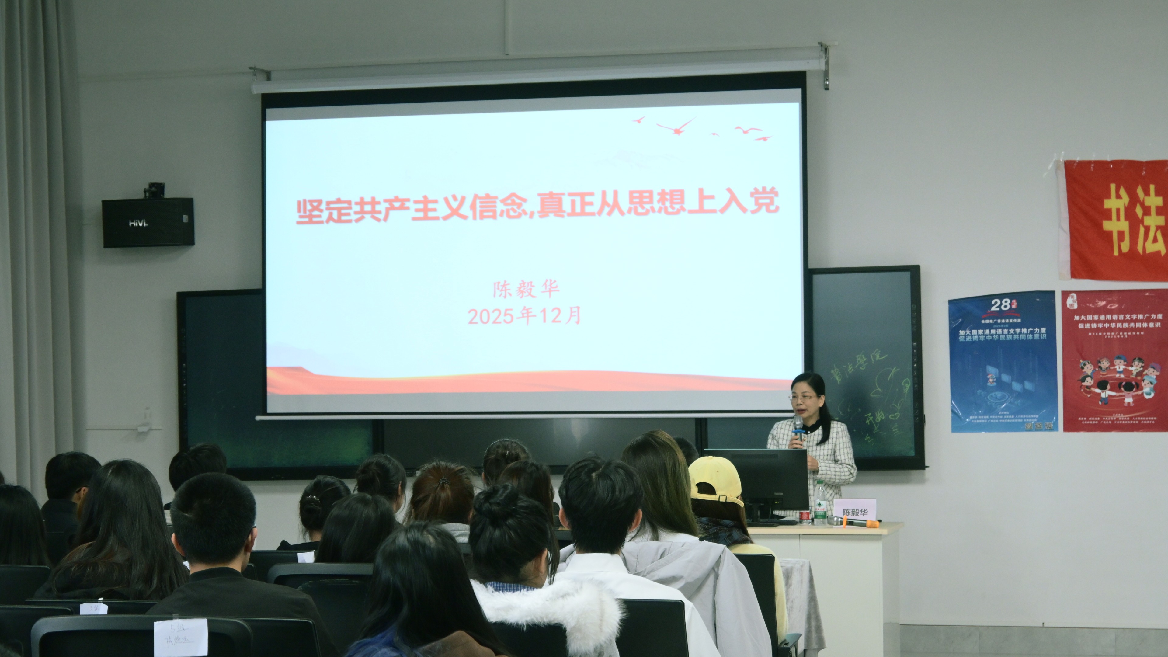 培训第一讲由校党委副书记陈毅华主讲,主题为“坚定共产主义信念,真正从思想上入党”。她从思想入党与组织入党的关系切入,梳理建党以来的重要历程,剖析不同入党动机,强调必须树立以共产主义信仰和为人民服务为核心的入党动机,鼓励学员在理论学习与实践锻炼中不断坚定信仰、锤炼党性。