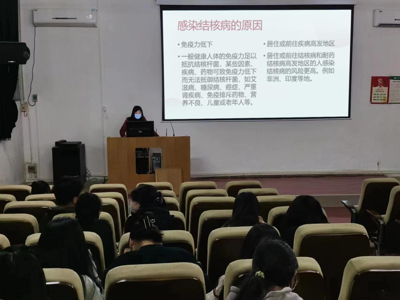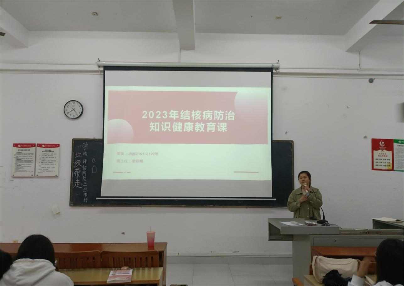为促进师生树牢“自身健康第一责任人”意识,我校于2023年3月开展了以“你我共同努力,终结结核流行”为主题的结核病防治宣传教育活动。开设了结核病防治知识健康教育课,课程主要强调结核病的概念、危害、传染源与传播途径以及如何防范传播等系列内容,为学生普及对结核病危害的认识。组织学生集体观看由自治区教育厅、自治区卫生健康委员会联合主办的《2023年世界防治结核病日广西校园宣传教育科普大讲堂》直播视频,同时为学生们发放《学校结核病健康教育宣传核心知识》,向学生普及结核病综合防治知识,教育学生养成健康的生活方式,提高自我防范能力。(周晓敏/摄)