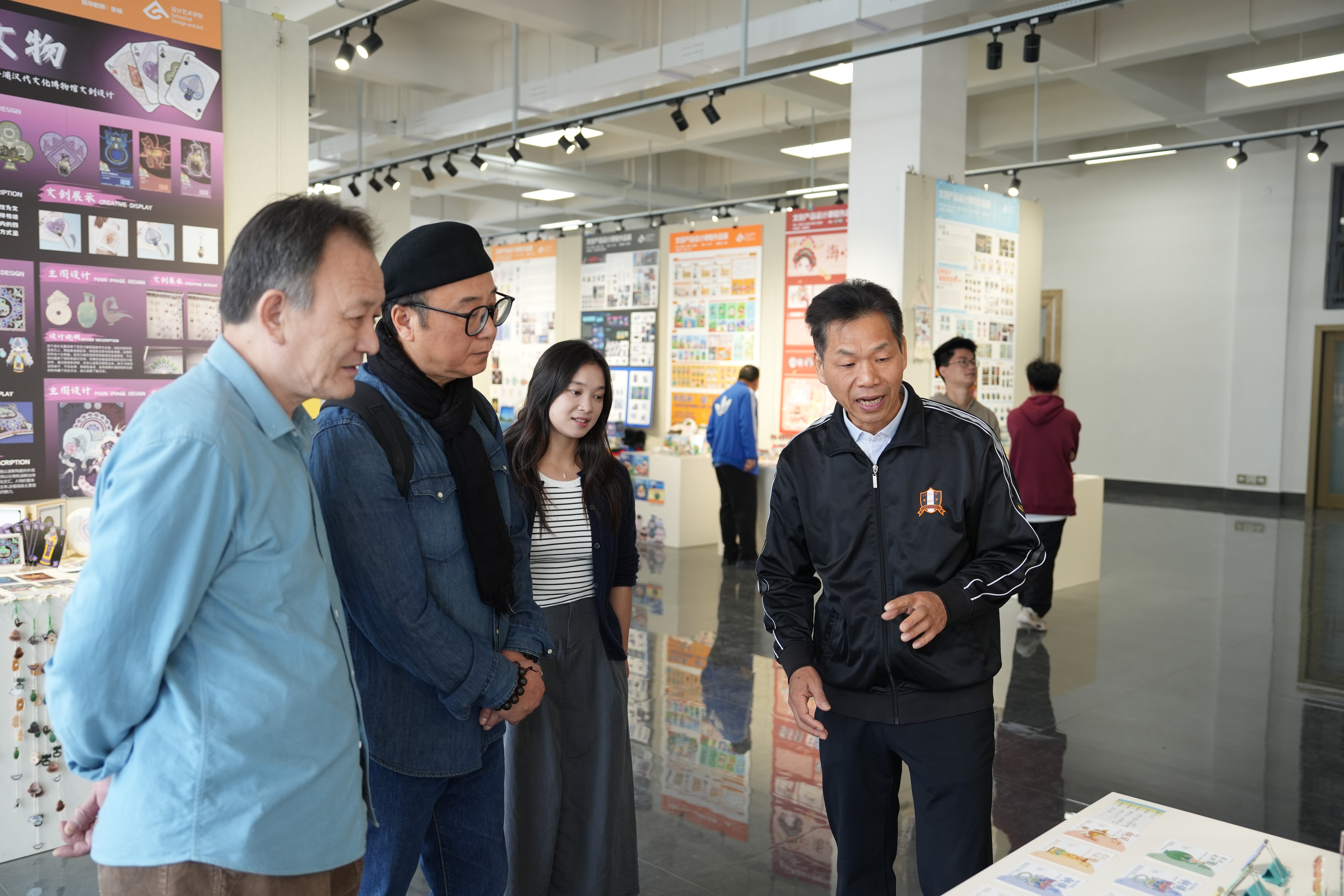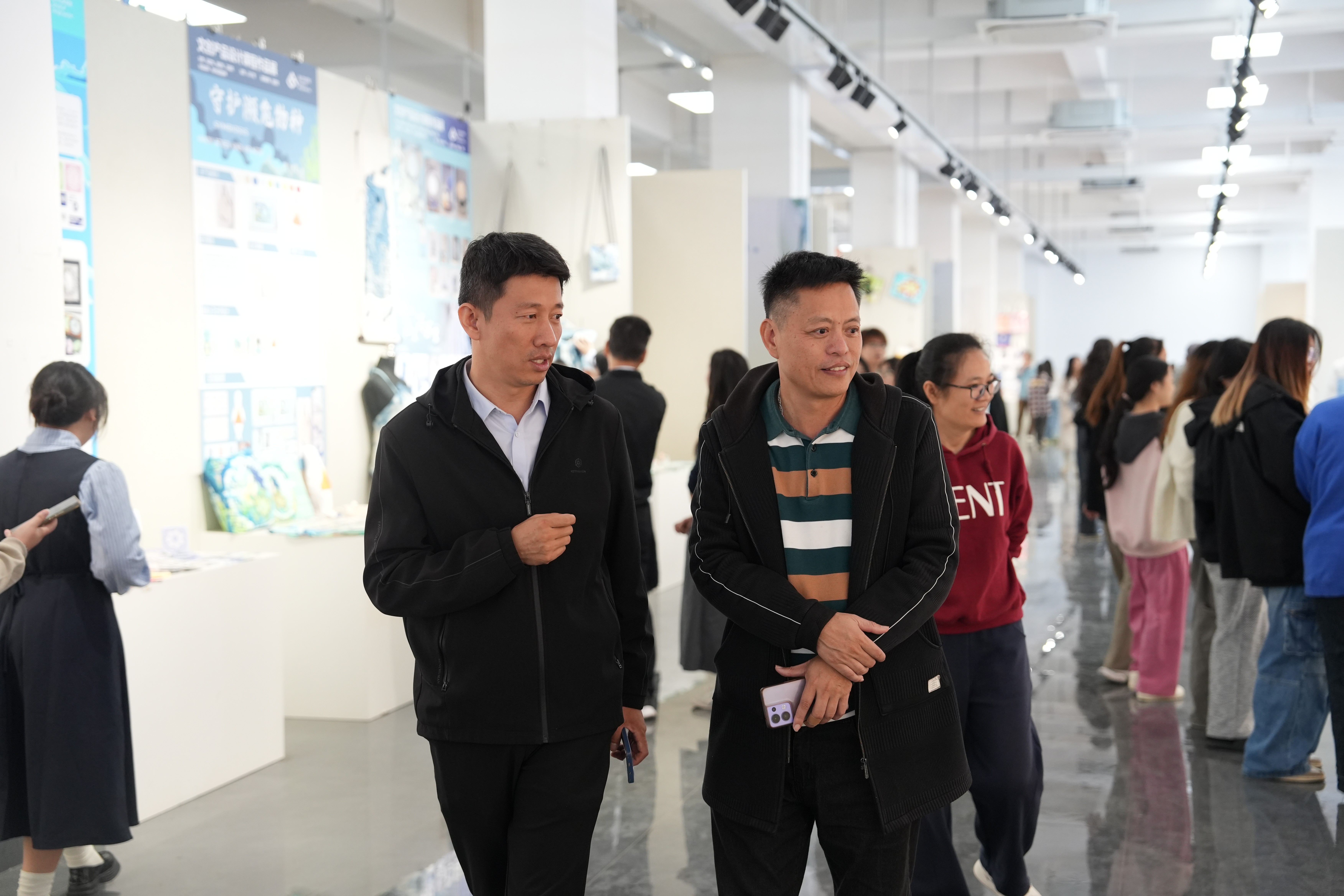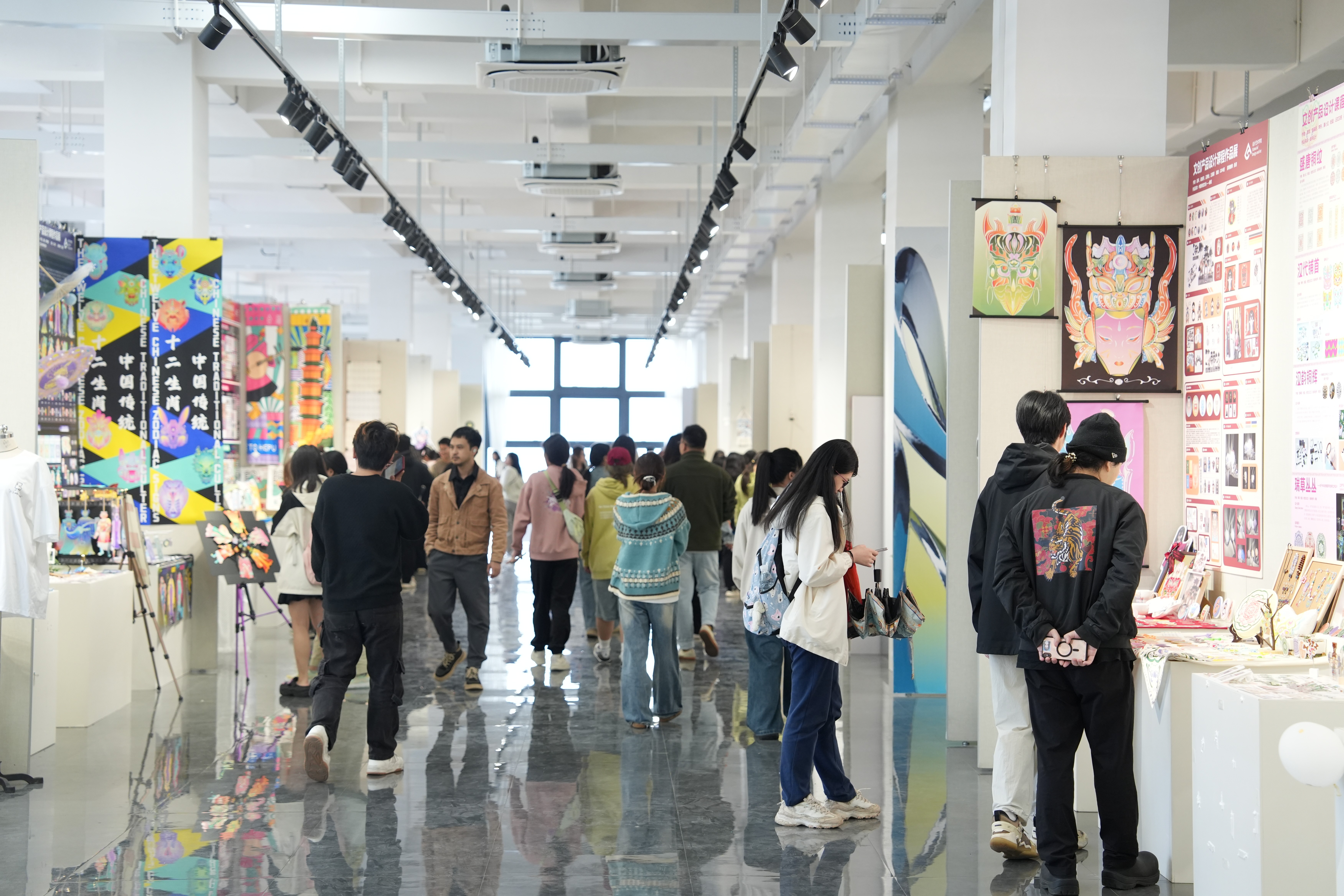 开幕式结束后,出席的各位老师、同学以及嘉宾们一同前往作品展区,近距离欣赏学生们的创意作品。这些作品不仅展现了学生们对传统文化的深刻理解和现代设计的巧妙融合,也体现了设计艺术学院在培养创新型设计人才方面的卓越成就。