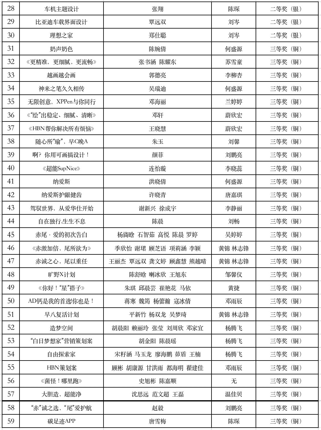 第十六届全国大学生广告艺术大赛颁奖典礼在北京顺利举行。在这场创意与智慧的激烈碰撞中,我院视觉传达专业的学子们在老师的指导下,力克群雄,荣获国赛共16项,其中二等奖1项,三等奖3项,优秀奖12项;省赛共59项,其中一等奖7项,二等奖23项,三等奖29项,为学校再添辉煌!