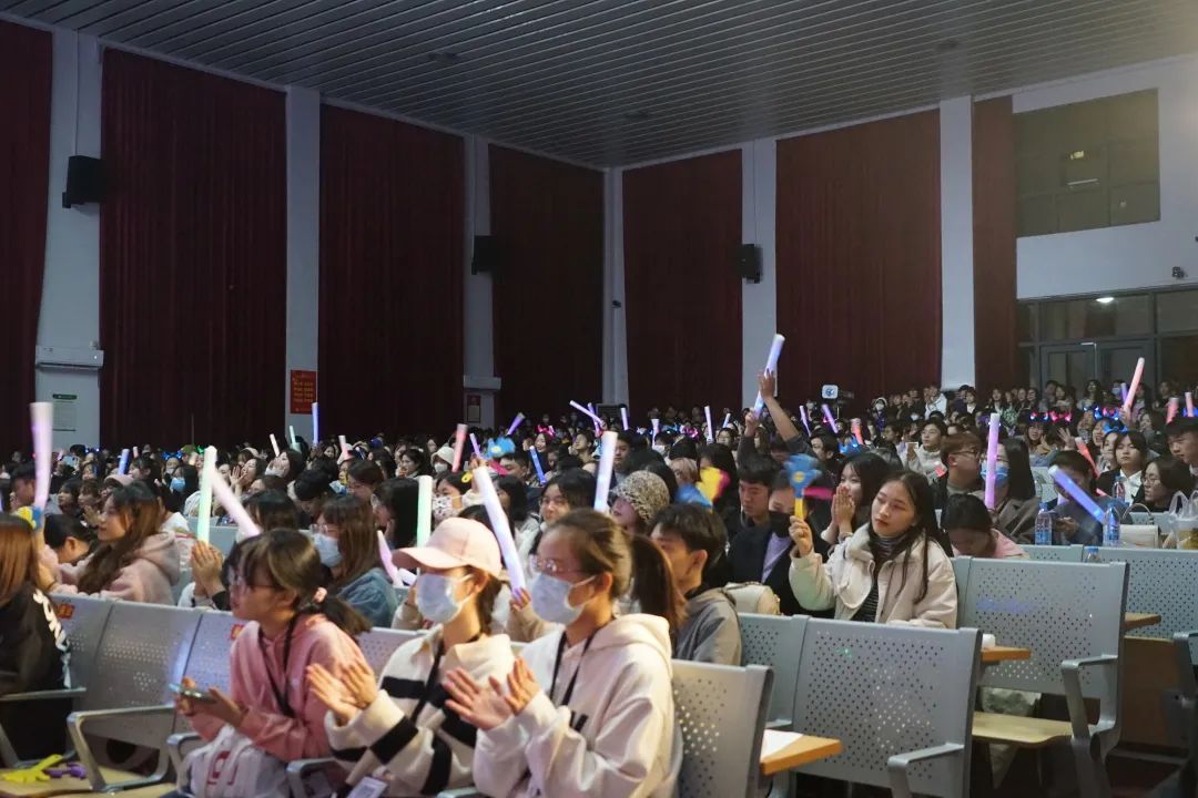 激扬旋律中,歌声与欢乐融合,观众们自发营造出一片星海,荧光棒形成的滚滚星河中,是我们对歌手们的支持,对悦耳歌声的喜爱。特别环节中,各位评委老师和同学通过授予锦带向自己喜爱的歌手送上一份祝福。