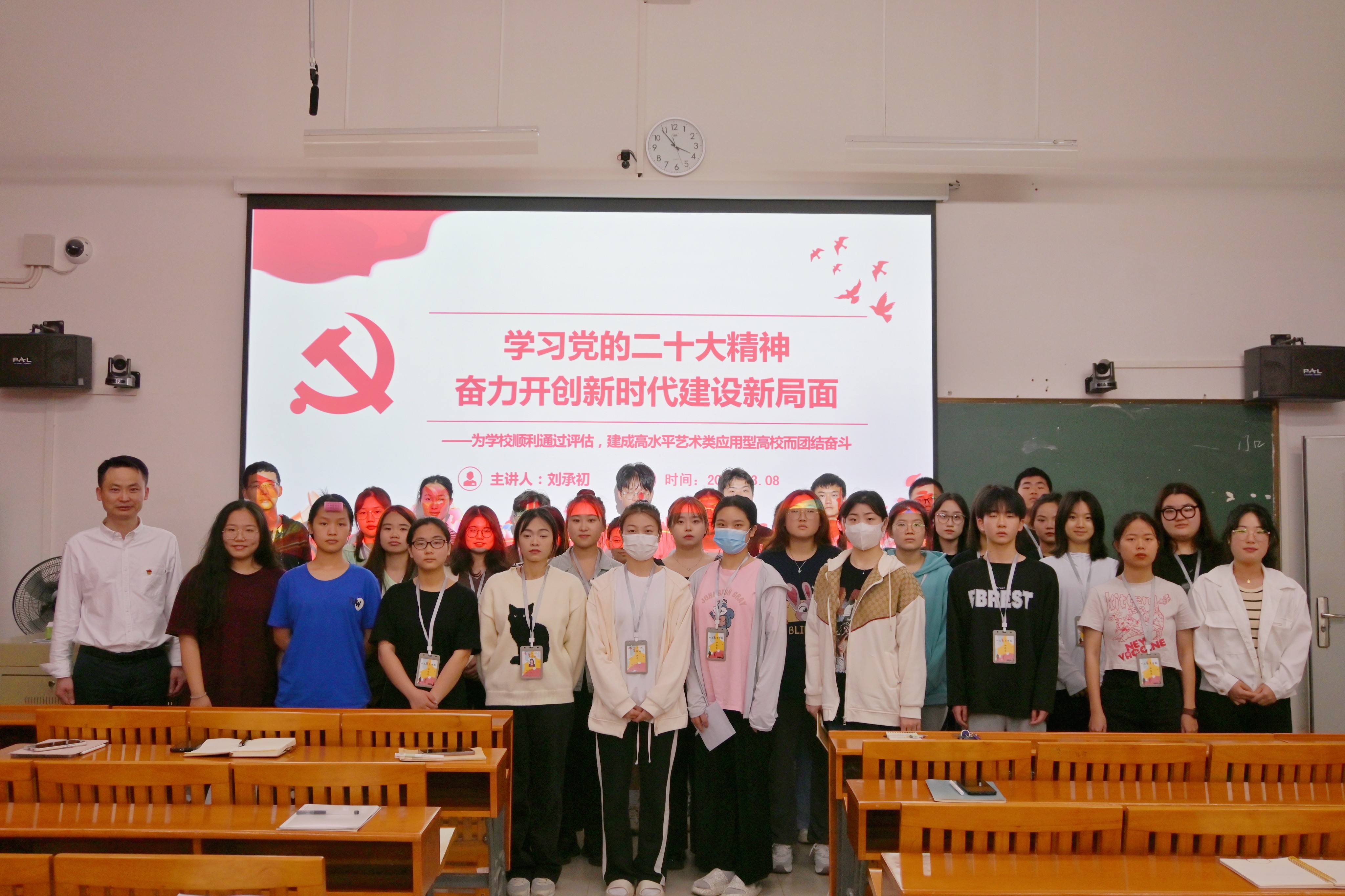 宣讲会最后,刘承初委员对同学们今后的学习生活提出建议。首先,提高思想认识,化“要我做”为“我要做”,转变思想,提高自觉主动性,用主人翁意识做好作为北艺学生干部的各工作。其次,建立榜样引领,于细微处显担当,号召同学们发挥先锋模范作用,从我做起,从小事做起,树立良好形象,以点带面,为创建良好学风、校风做贡献。最后,增强整体素质,积蓄奋斗力量,希望同学们不忘本职,加强学习,掌握本领,用实力展现北艺学子精神风貌,为建设社会主义现代化强国积蓄奋斗力量。(董秋伶  雷韦唯/摄)