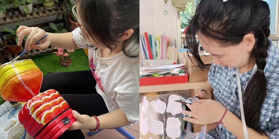 2102班见习生主动参与幼儿园的环境创设