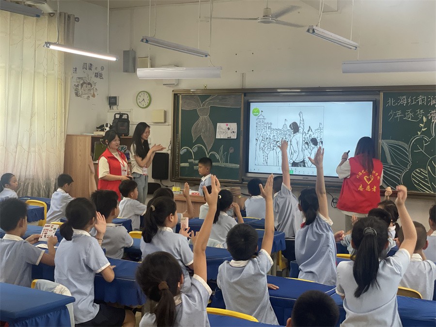 4月18日下午,学校文学院2022级学生走进北海艺术设计学院附属学校,以“讲好北海故事、传承红色基因”为主题,为小学生们开展了一场别开生面的红色教育主题班会。