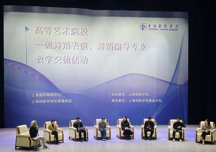 本次活动的核心环节为三场专题研讨会,分别围绕“一流舞蹈表演专业建设”“一流舞蹈编导专业建设”“高素质舞蹈人才培养”三大主题展开。邓欢、陈俏仪两位教师全程认真聆听各高等艺术院校、专业院团专家关于课程体系创新、创作实践教学改革、产教融合模式构建等领域的前沿理念与成功实践经验,并结合新时代文化发展需求及我校舞蹈专业建设实际,就专业发展方向、教学优化路径等问题展开深入思考。此外,上海戏剧学院舞蹈学院举办的精品舞蹈专场展演将活动推向高潮,展演作品思想精深、艺术精湛、制作精良,充分展现了该校舞蹈专业教学成果向高水平艺术创作转化的卓越能力。