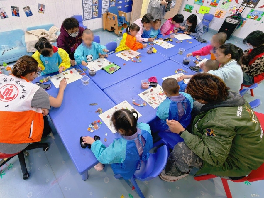授课过程中,志愿者团队严格按照前期磨课确定的教学方案开展教学工作。手工课上,志愿者引导孩子们运用树叶拓印工艺进行创意创作,通过色彩搭配与图案设计,自主表达内心情绪;口才课则以情景游戏为教学载体,逐步引导孩子们大胆发音、主动表达,有效帮助孩子们克服沟通顾虑。志愿者以真诚的态度与耐心地陪伴,为孩子们搭建起自我表达的专属舞台,课堂上孩子们的灿烂笑脸与富有创意的作品,共同构成系列活动中最温馨的场景。