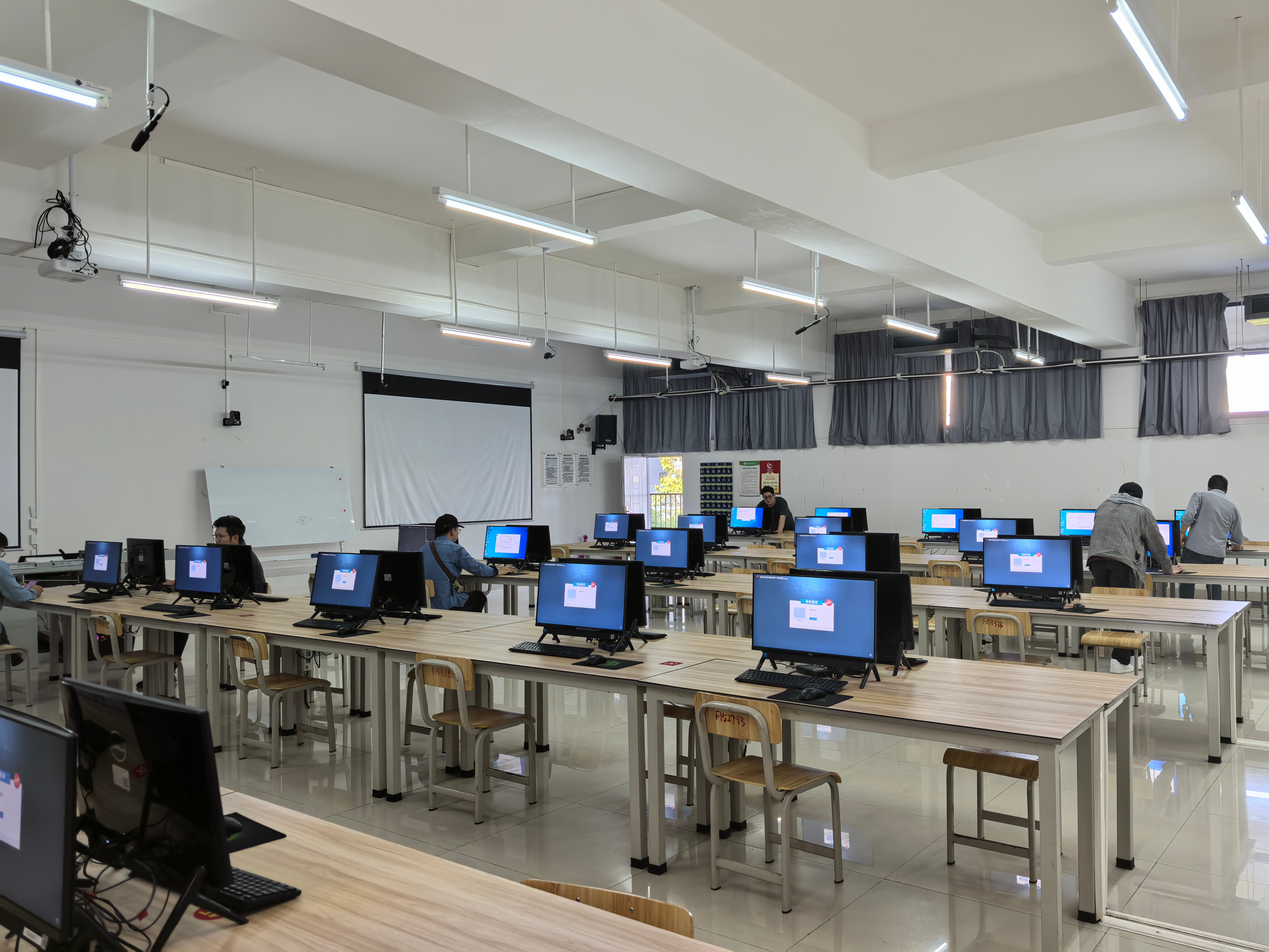 目前,考场设备及系统已通过联调测试,监考人员培训覆盖率100%。设备与信息处将于考前一日再次开展设备复检,全力护航全国计算机等级考试顺利实施。(凌玲/摄)