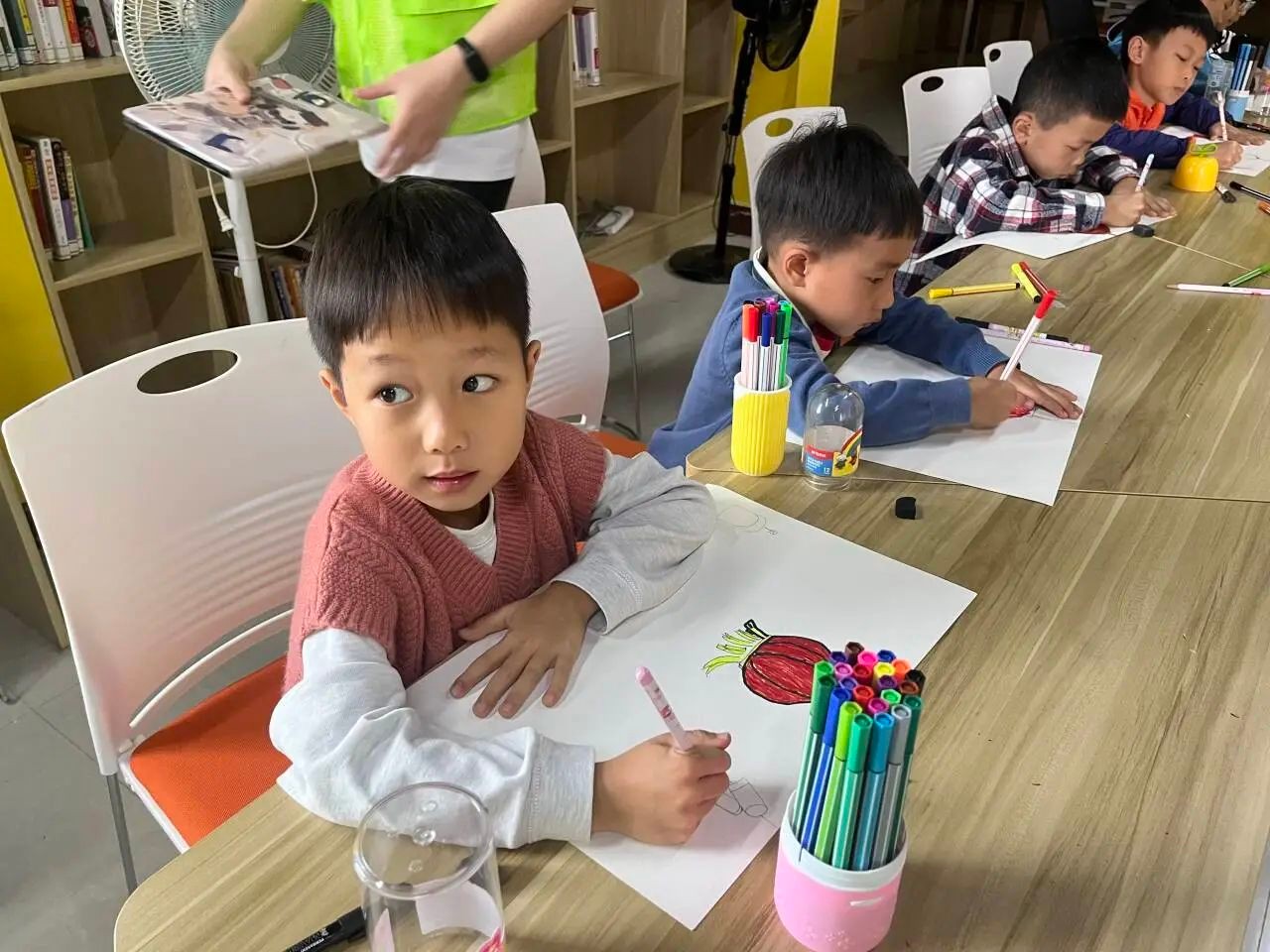 绘画课堂教授的不仅仅是绘画知识,更多的是教会他们独立思考的能力。每一幅儿童画都能表达出孩子们的所思所想,有着独特的特点,是每一个孩子创造力的表现,是属于孩子们自己的作品。所以我们要相信,每一个与众不同的孩子,都有独一无二的颜色。