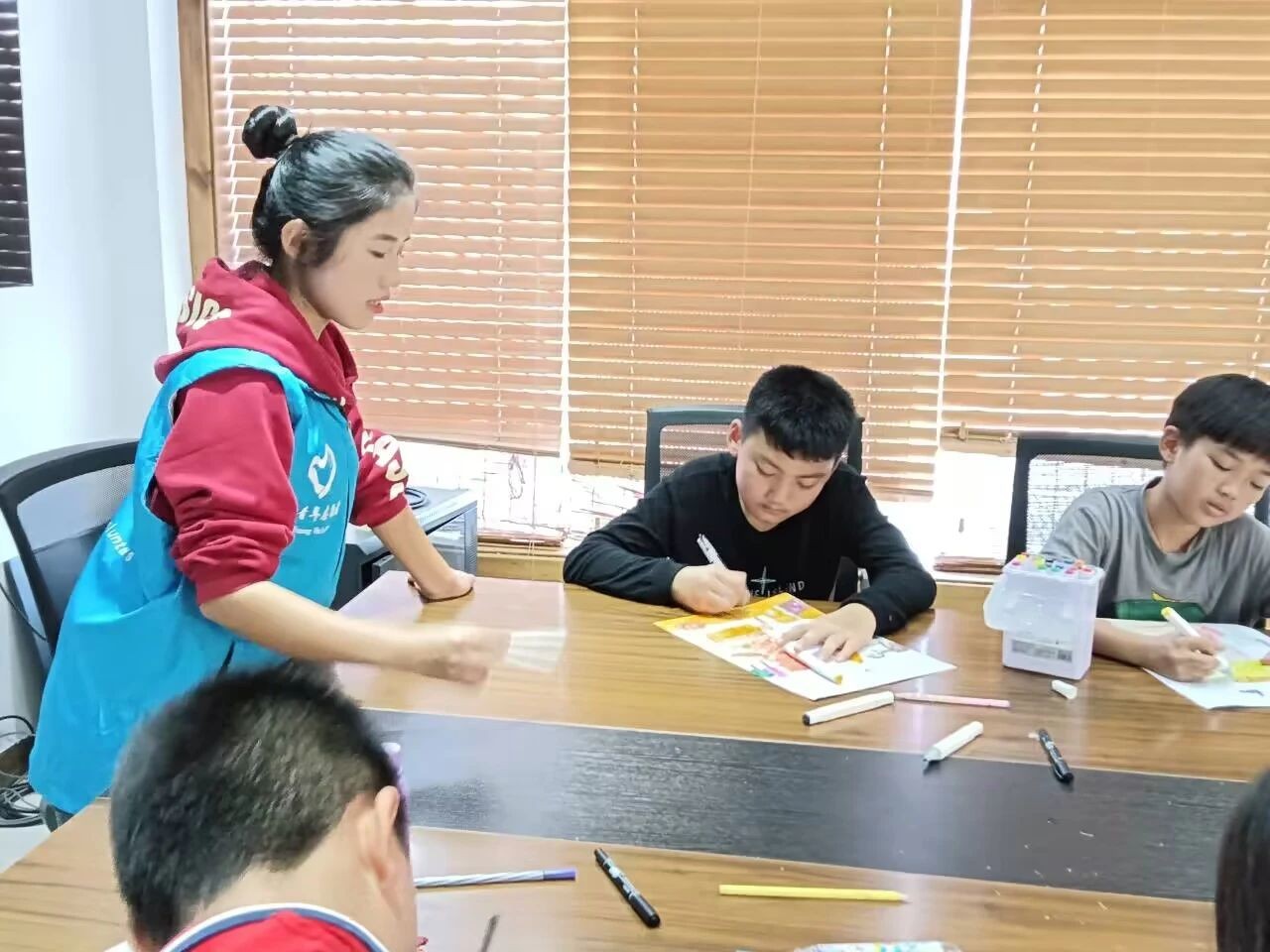 以青春之名,赴时代之约。2023年12月9日,我校团委青年志愿者协会数名志愿者前往疍家小镇和侨北社区开展本周的周末课堂。他们以昂扬的斗志,饱满的热情迎接每一位孩子的到来。这次的支教课堂开设的是绘画课程,以老师为主导,孩子为主体,用绘画创作来培养孩子的兴趣。